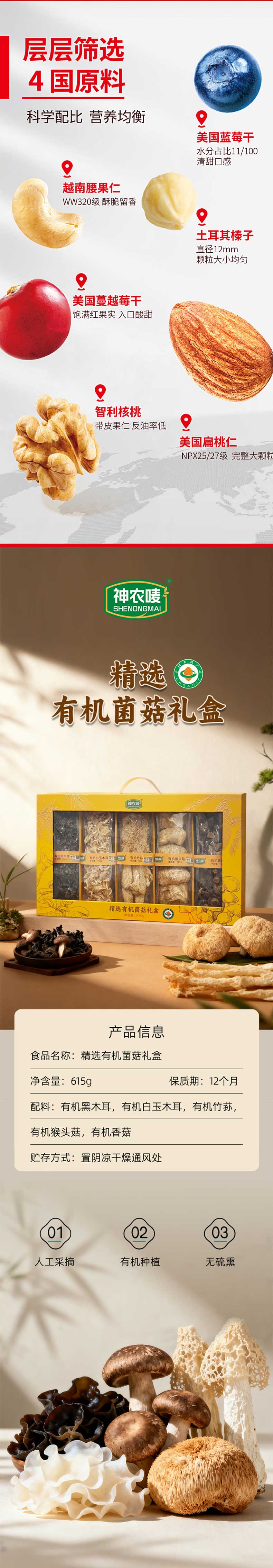 3.神农唛精选有机菌菇礼盒615g