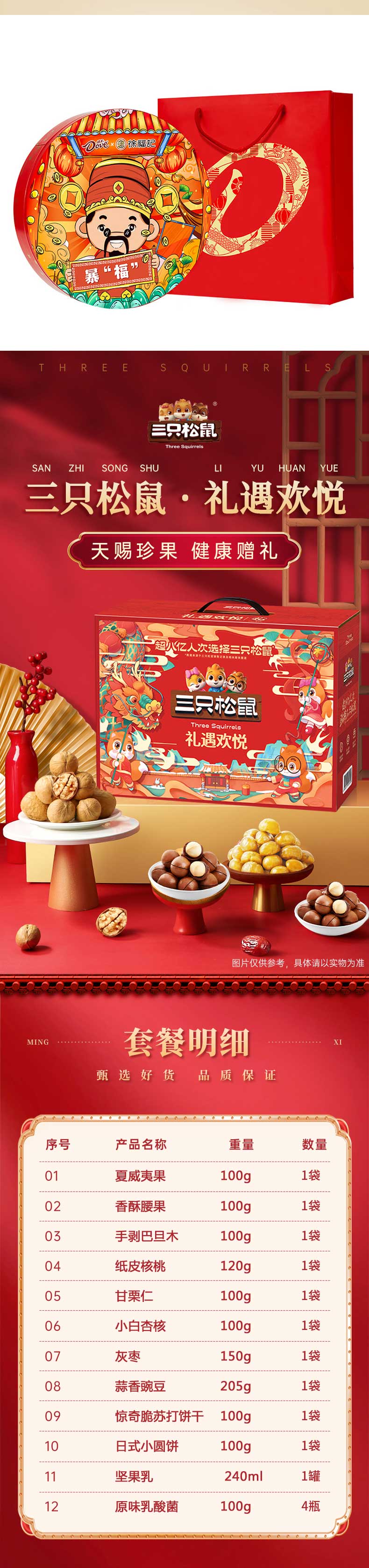 蓝罐/美心/德芙/三只松鼠/周黑鸭/广州酒家/冈州故事/特仑苏-牛奶休食心意福全组合
