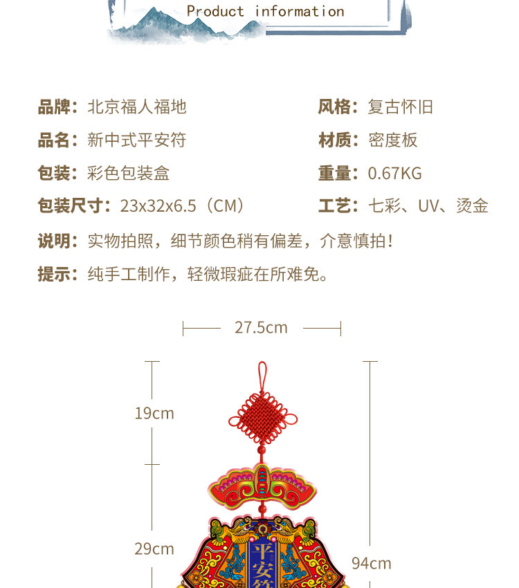 福人福地 木艺挂件-烫金大平安符GA.20.06.01