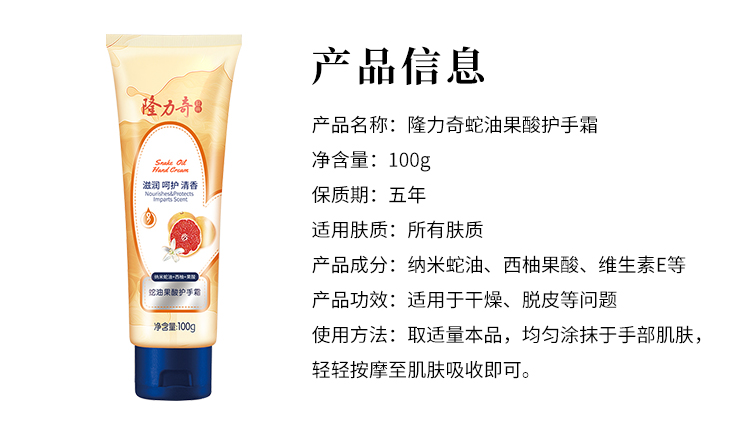 隆力奇蛇油果酸护手霜 补水保湿 100g