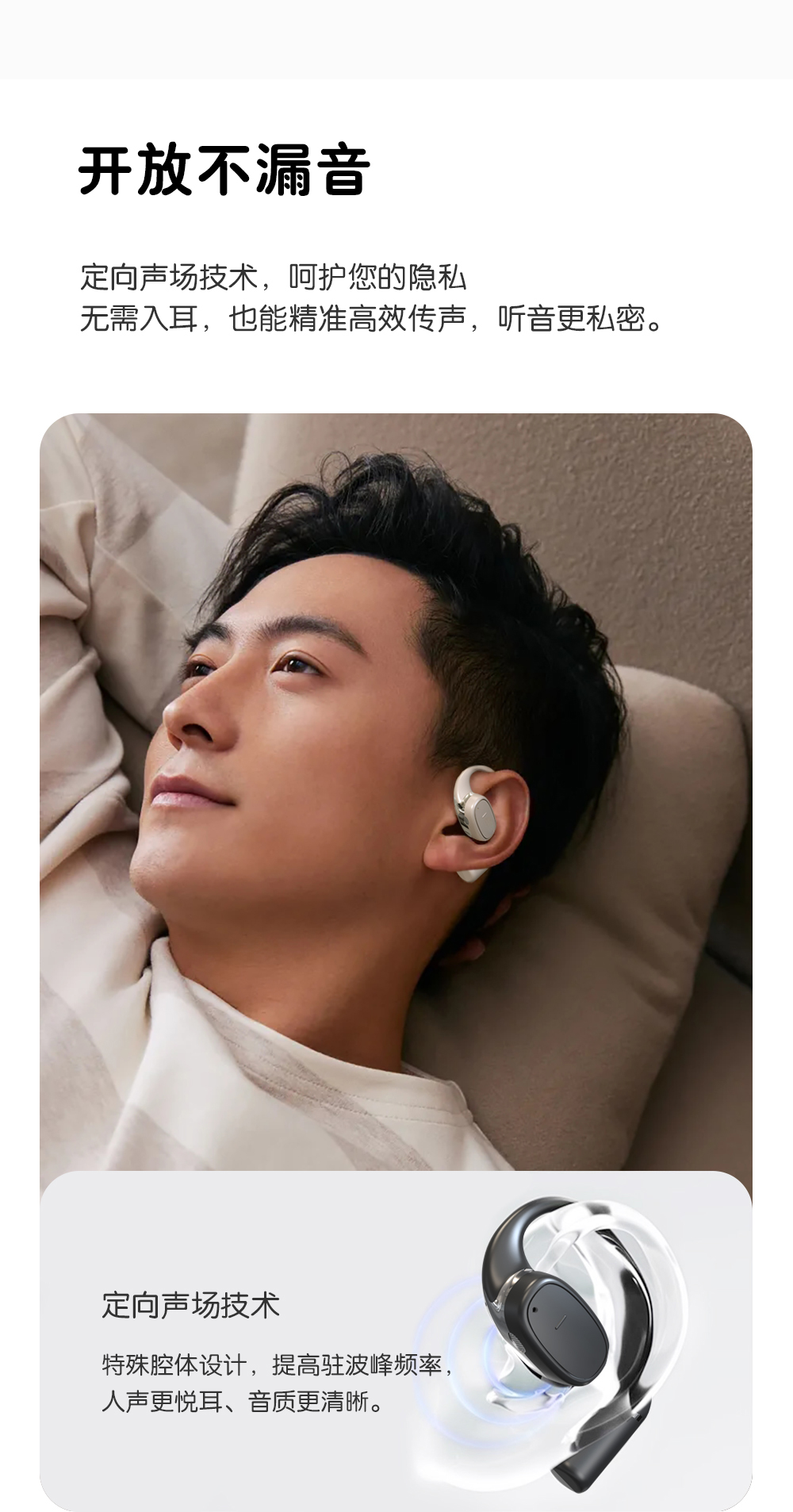 2,全天候轻盈舒适,久戴不累耳,兼顾音乐与环境音,佩戴更安全