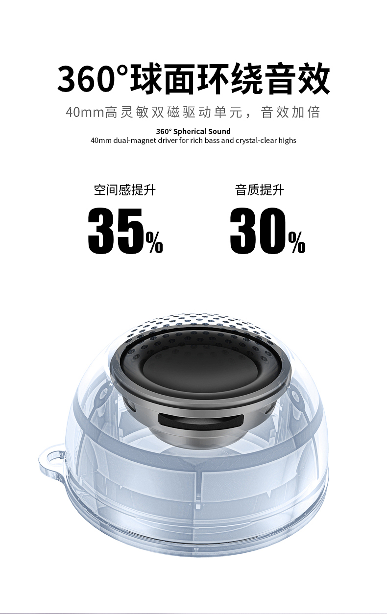 2.升级5.3蓝牙芯片,连接距离更远,播放更稳定,抗干扰更强;