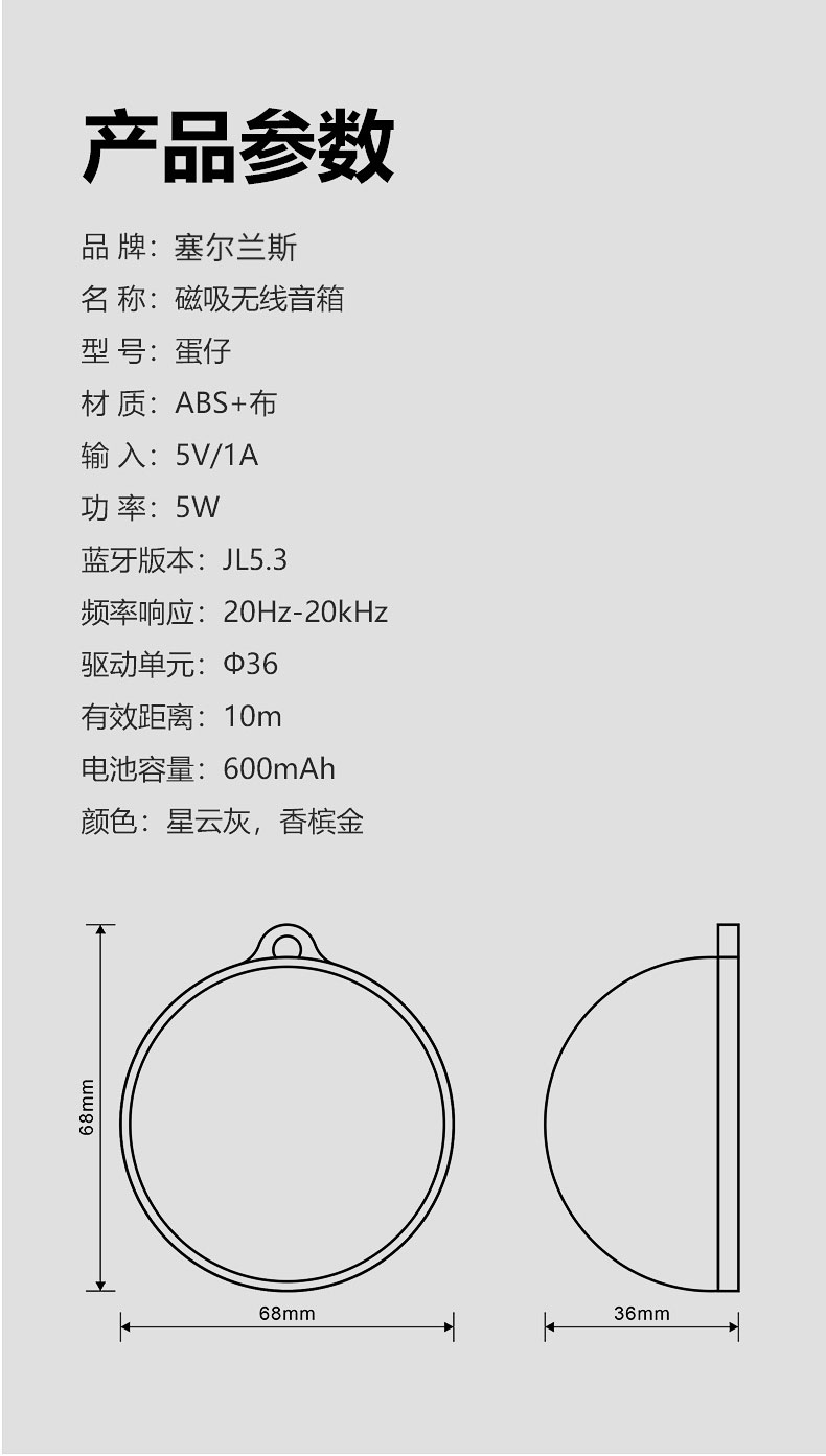 塞尔兰斯-蓝牙音箱 磁吸无线音箱(型号:S20)