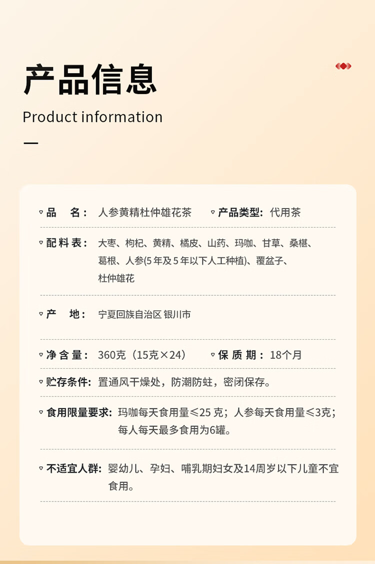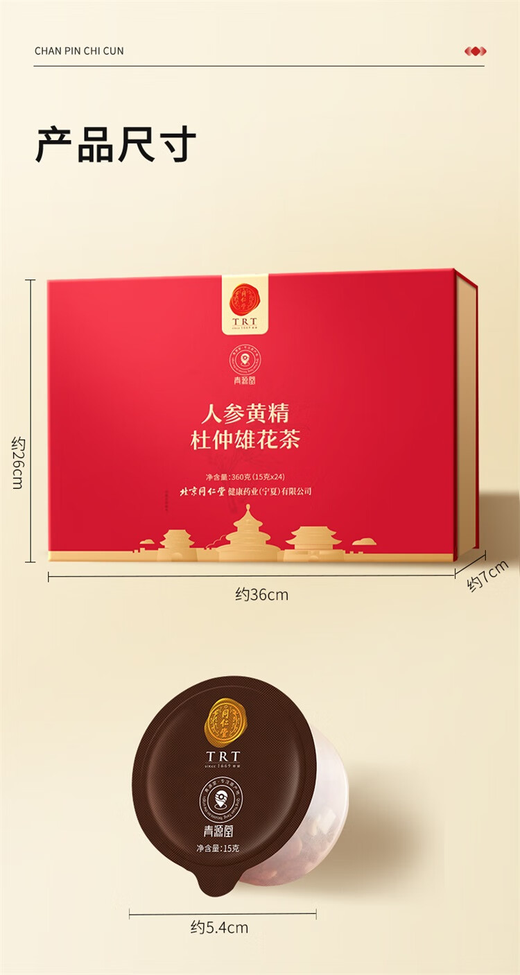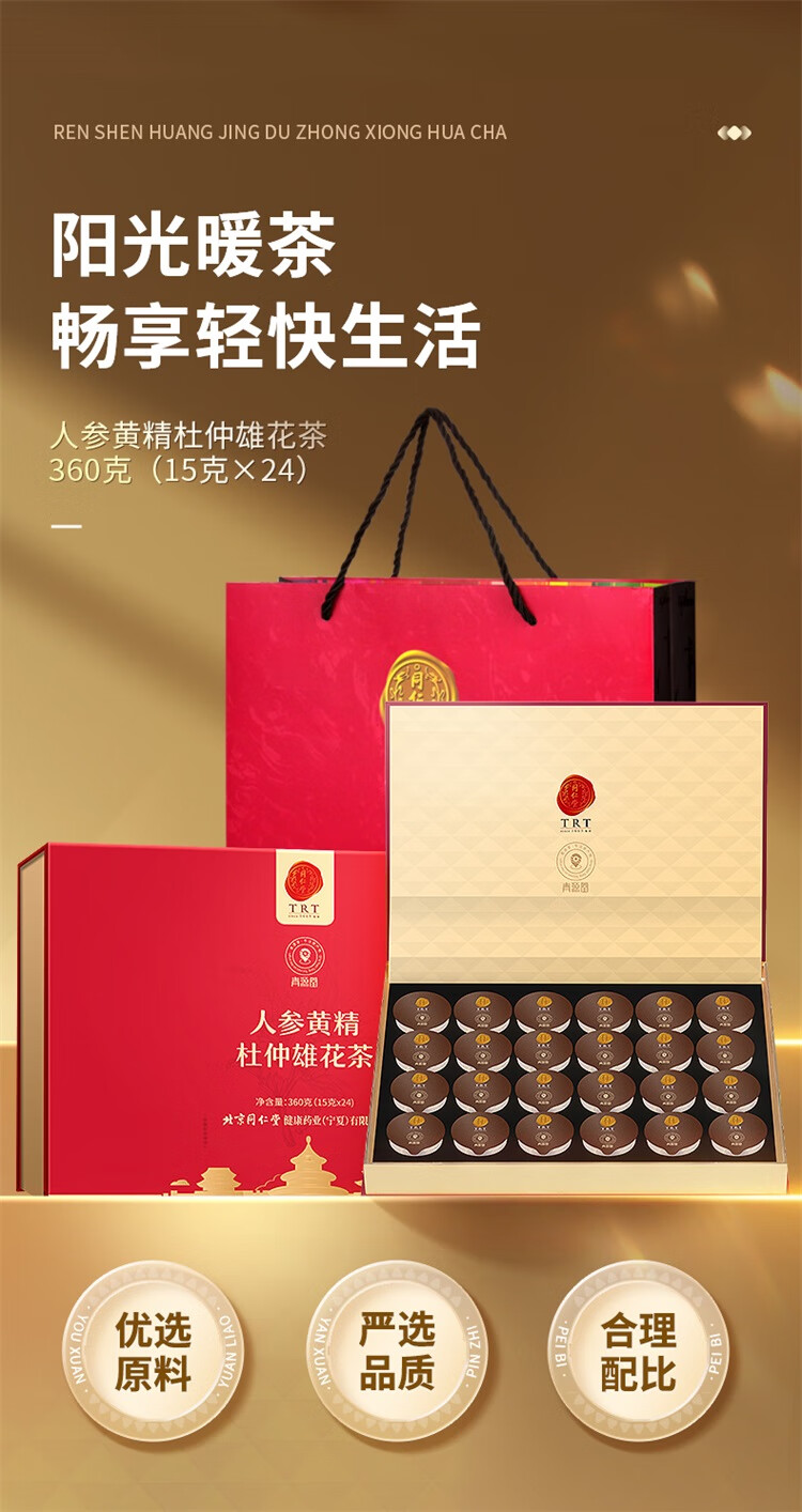 北京同仁堂青源堂人参黄精杜仲雄花茶360克(15g×24罐)