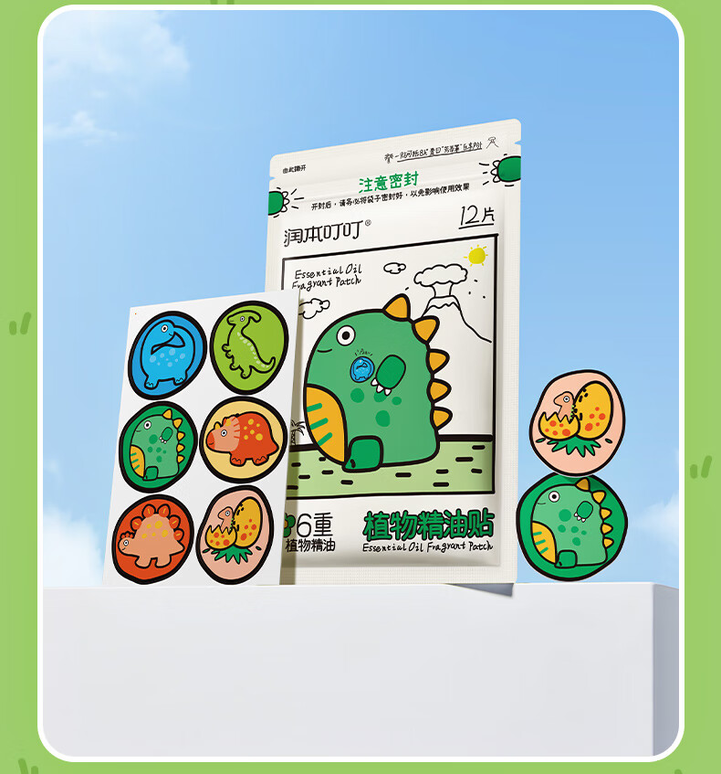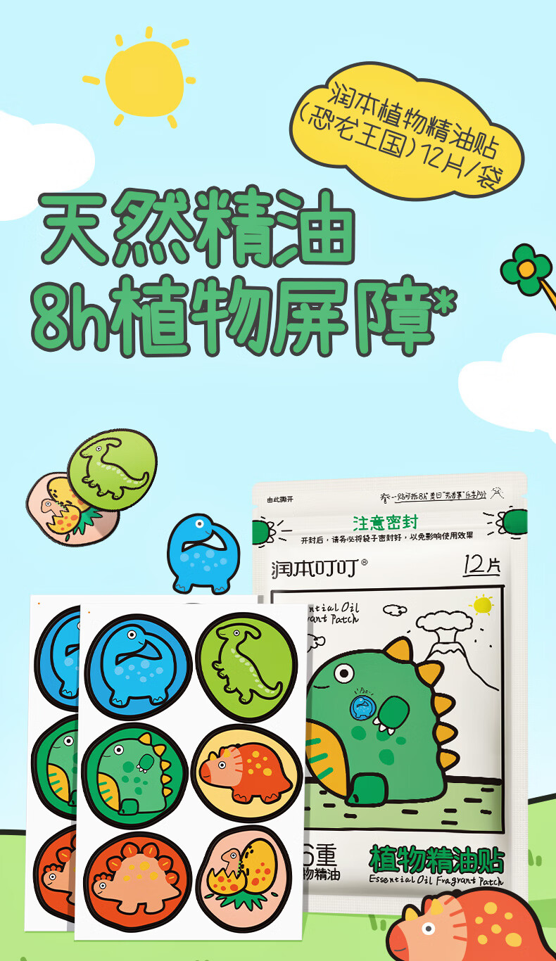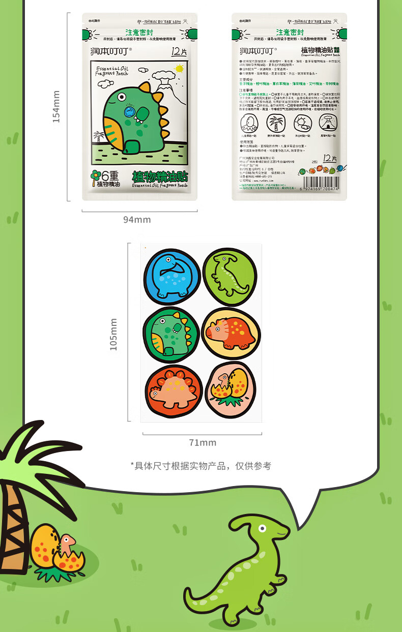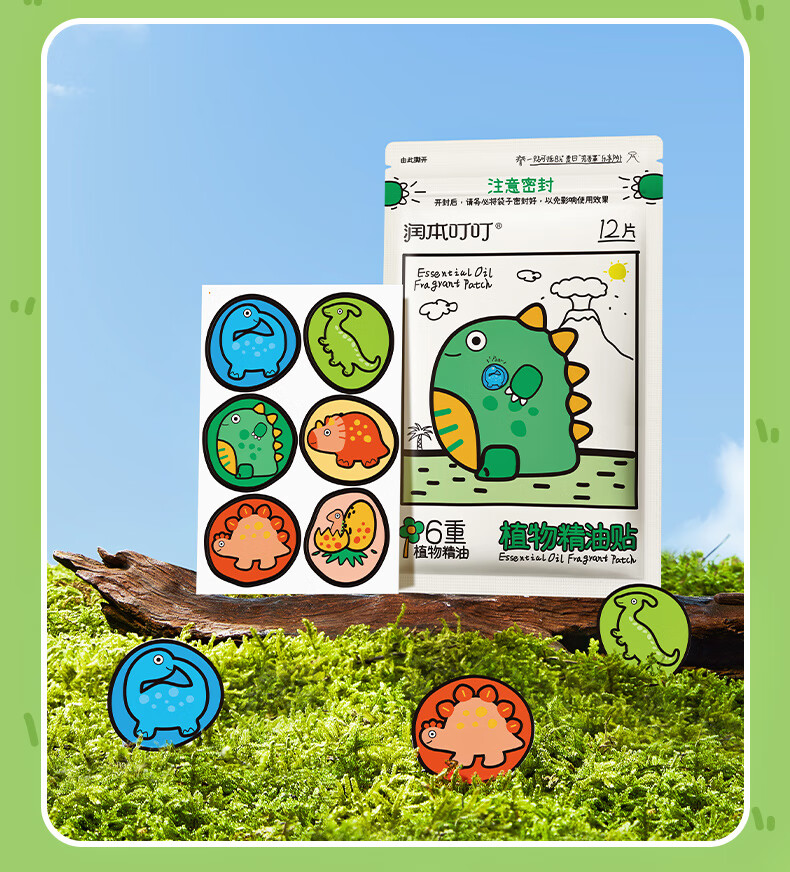 润本叮叮植物精油贴(恐龙王国)-12片装-2024版