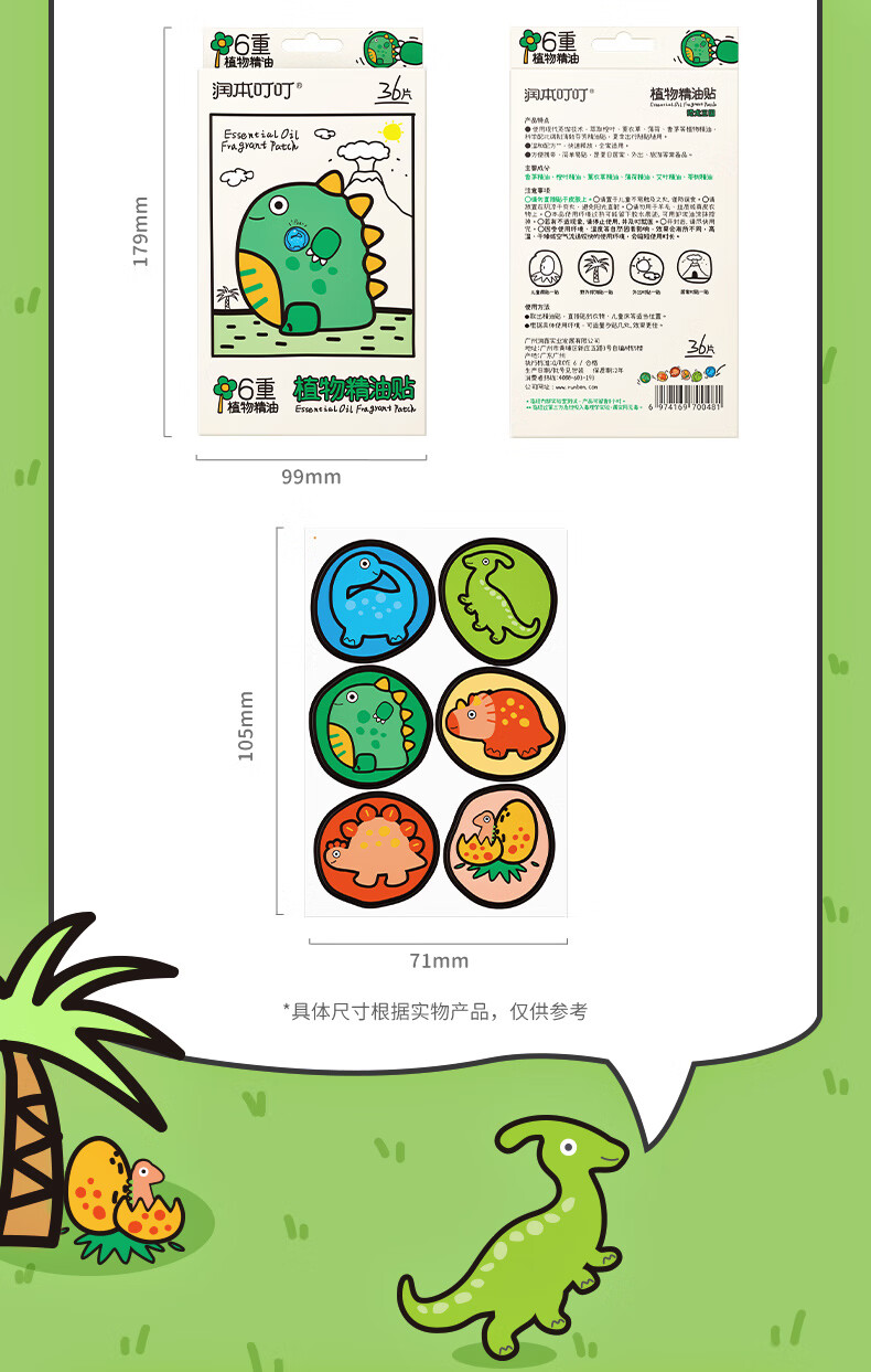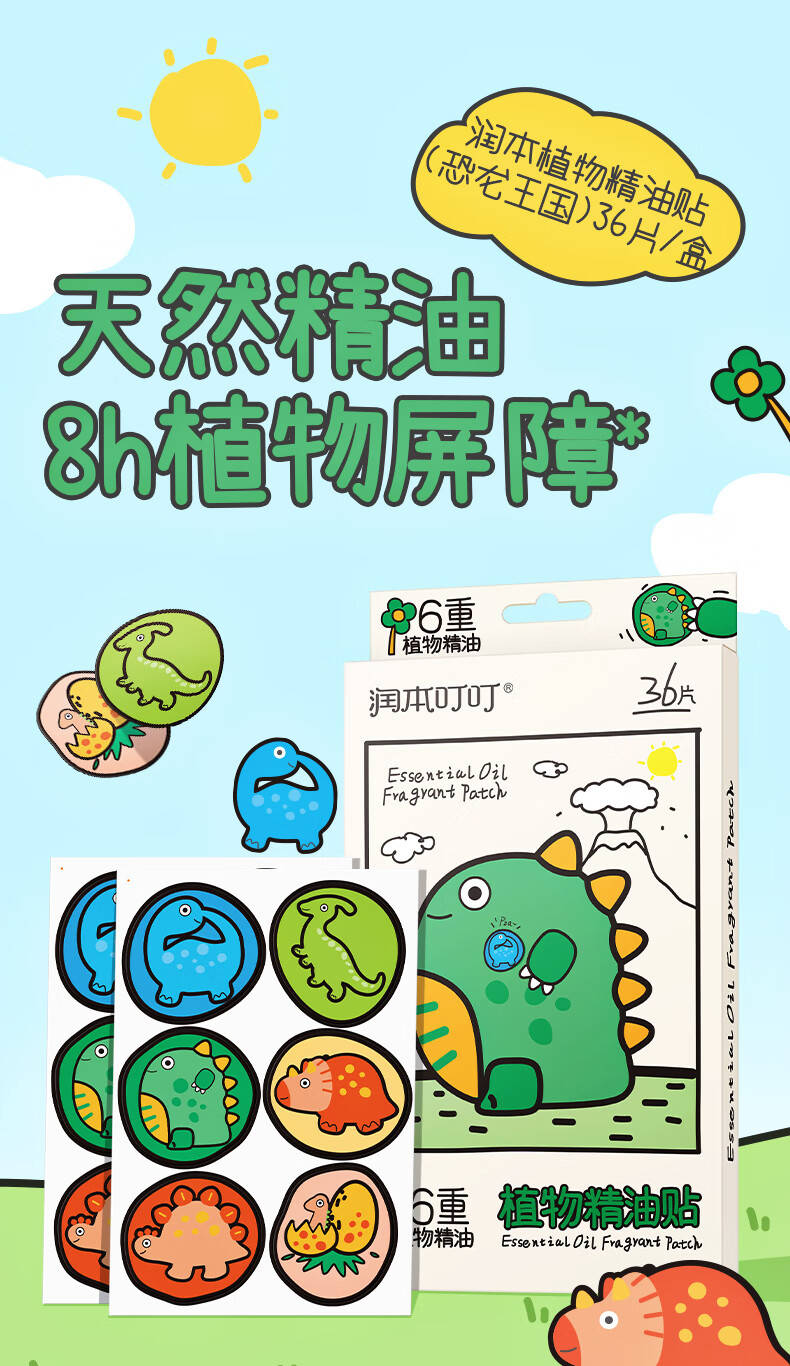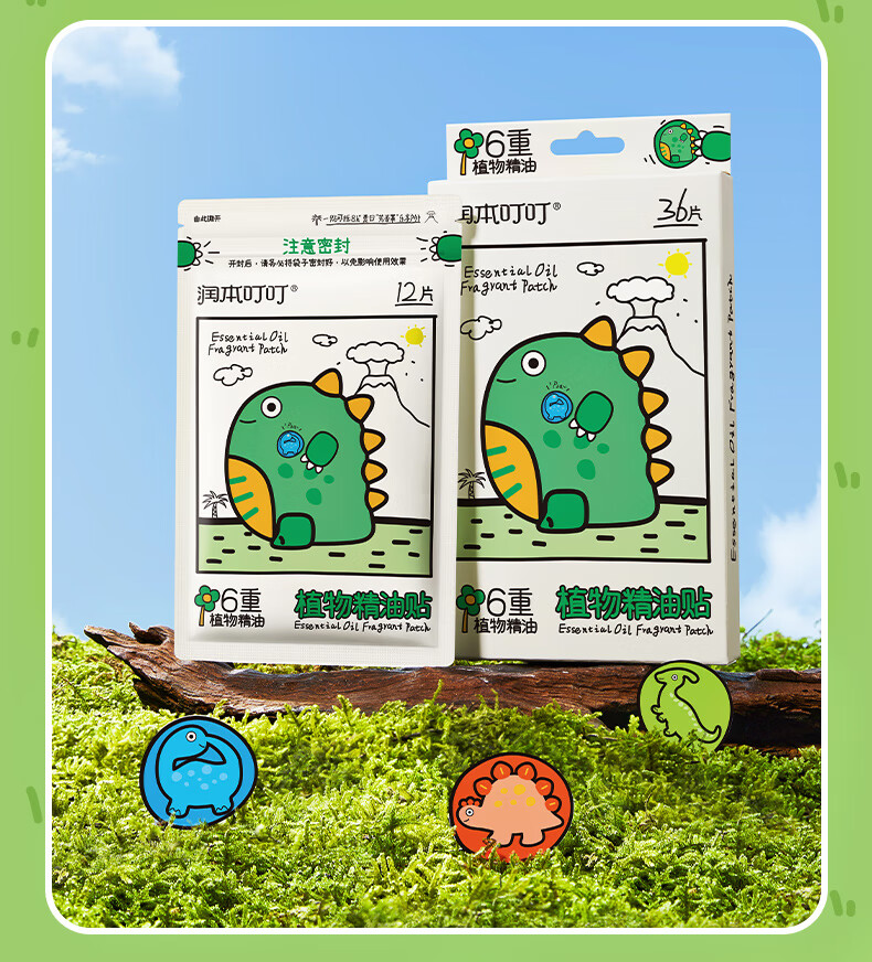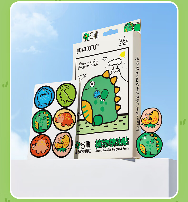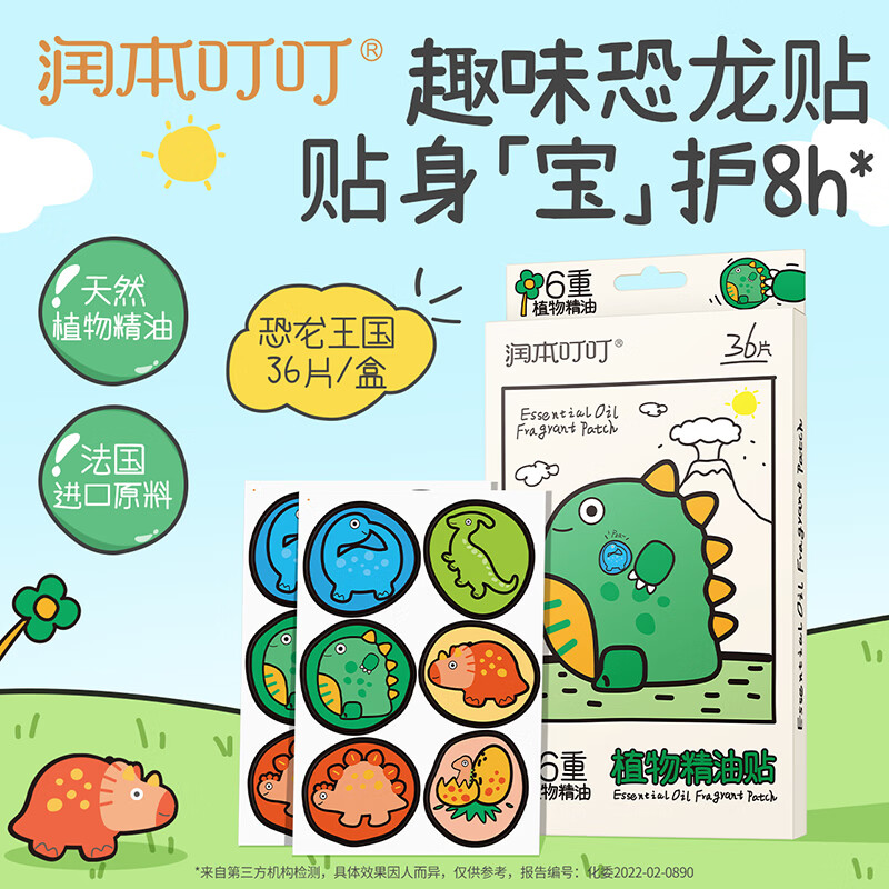 润本叮叮植物精油贴(恐龙王国)-36片装-2024版-X