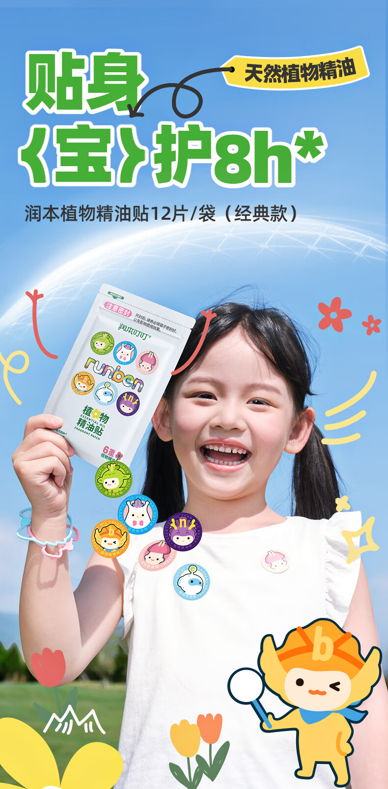 润本叮叮植物精油贴PU款(经典卡通贴) 12片装-2024版-X