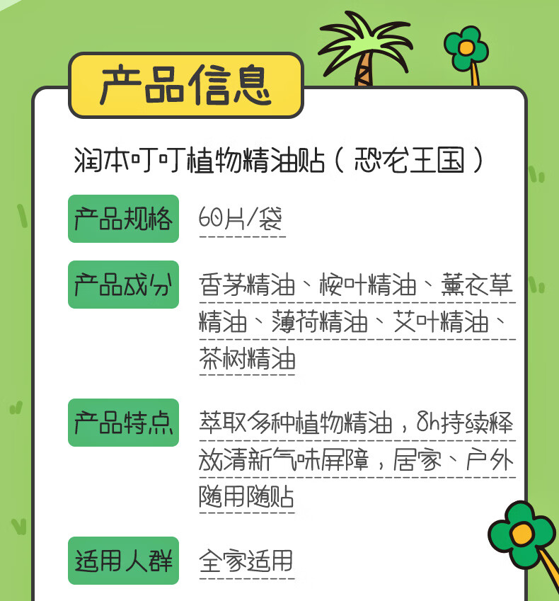润本叮叮植物精油贴(恐龙王国)-60片装-2024版