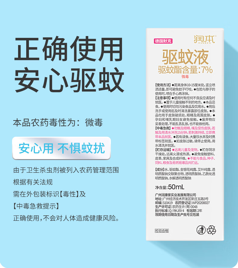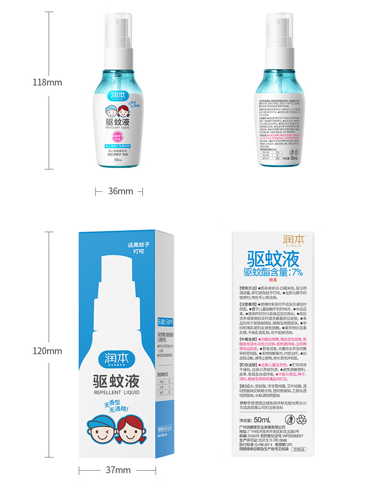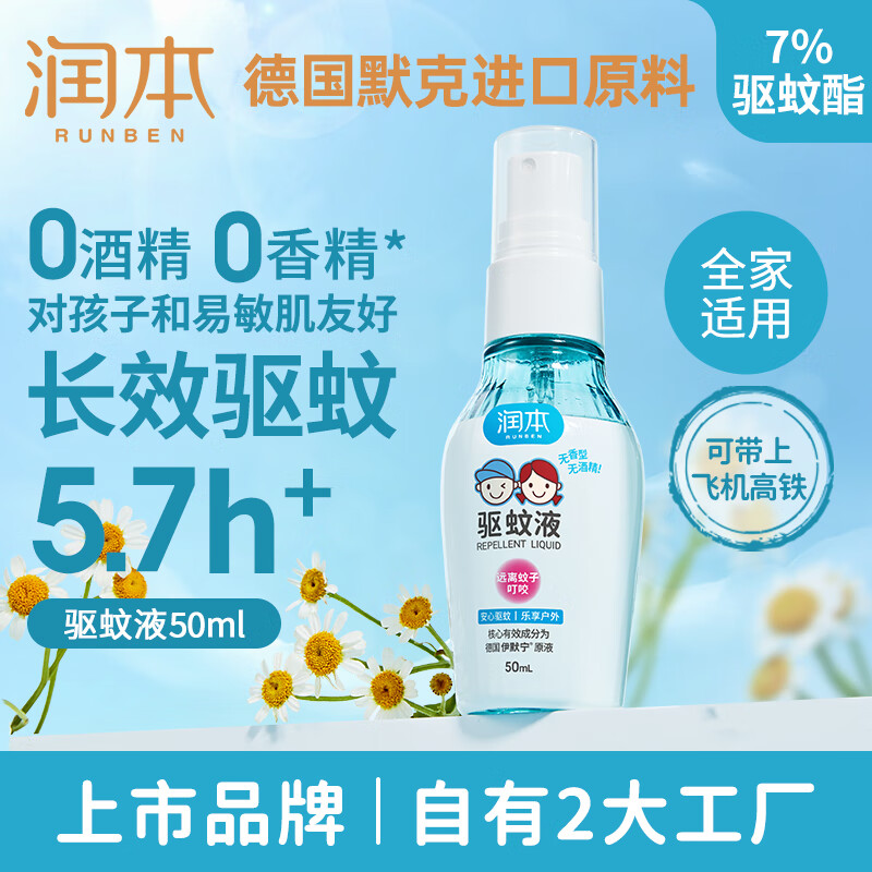 润本7%驱蚊酯驱蚊液(无酒精无香型)50ml