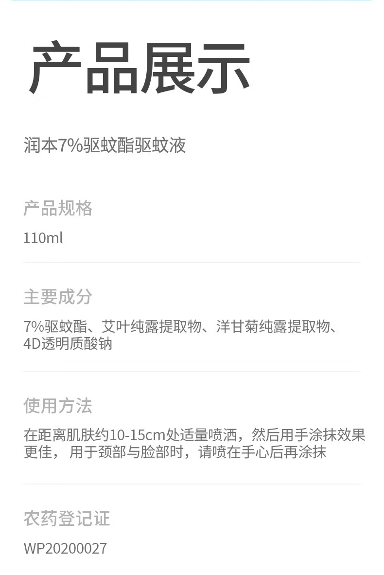 润本7%驱蚊酯驱蚊液(无酒精无香型)110ml