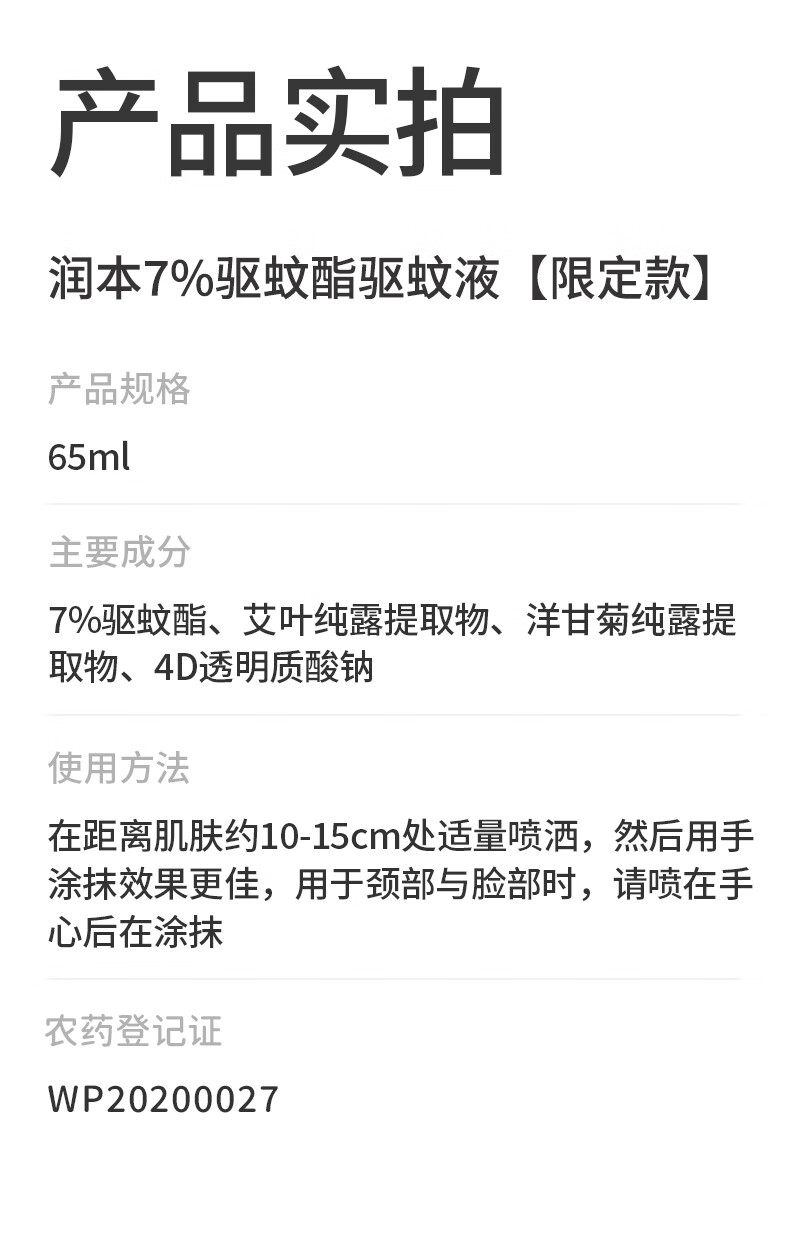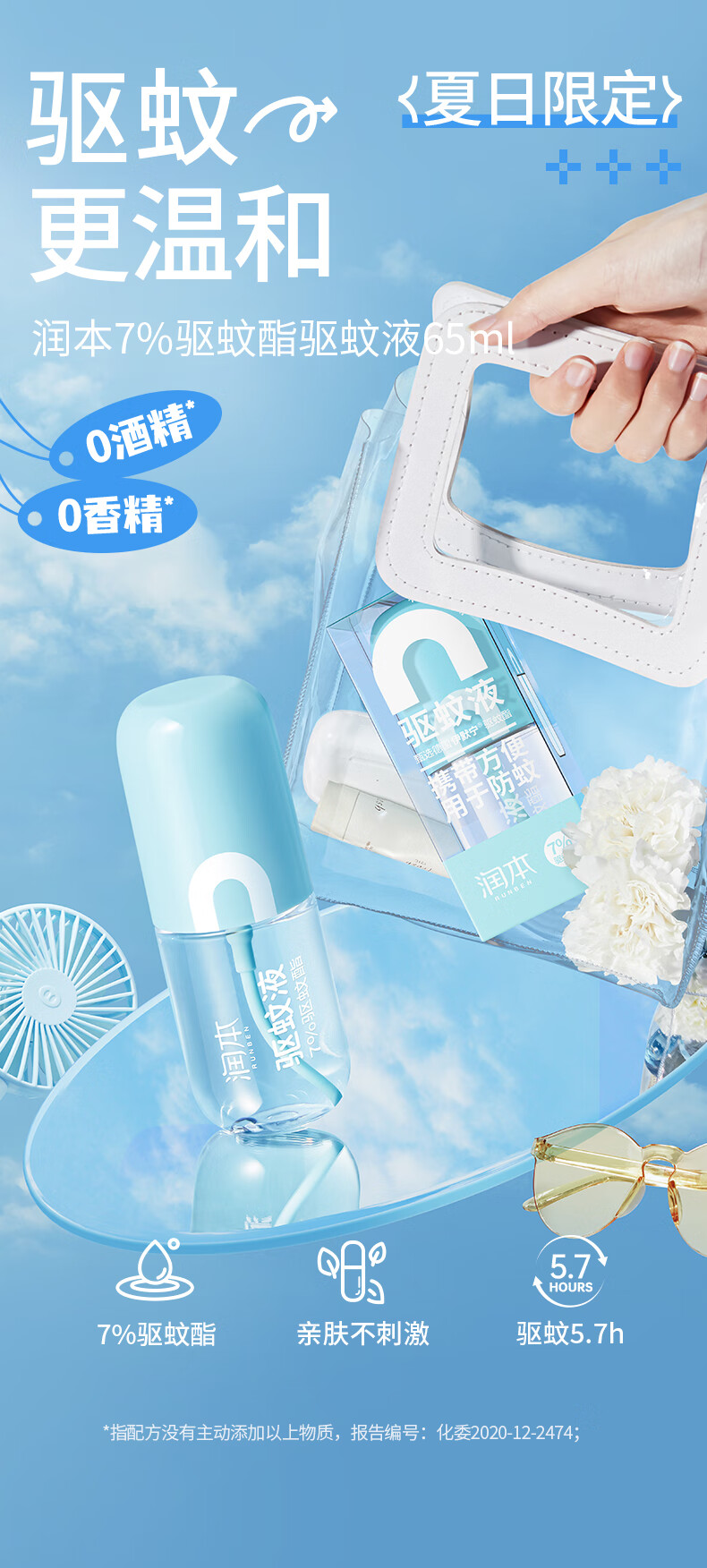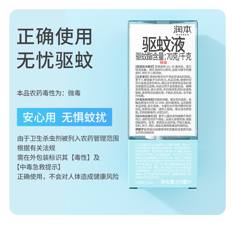 润本7%驱蚊酯驱蚊液(无酒精无香型)65ml