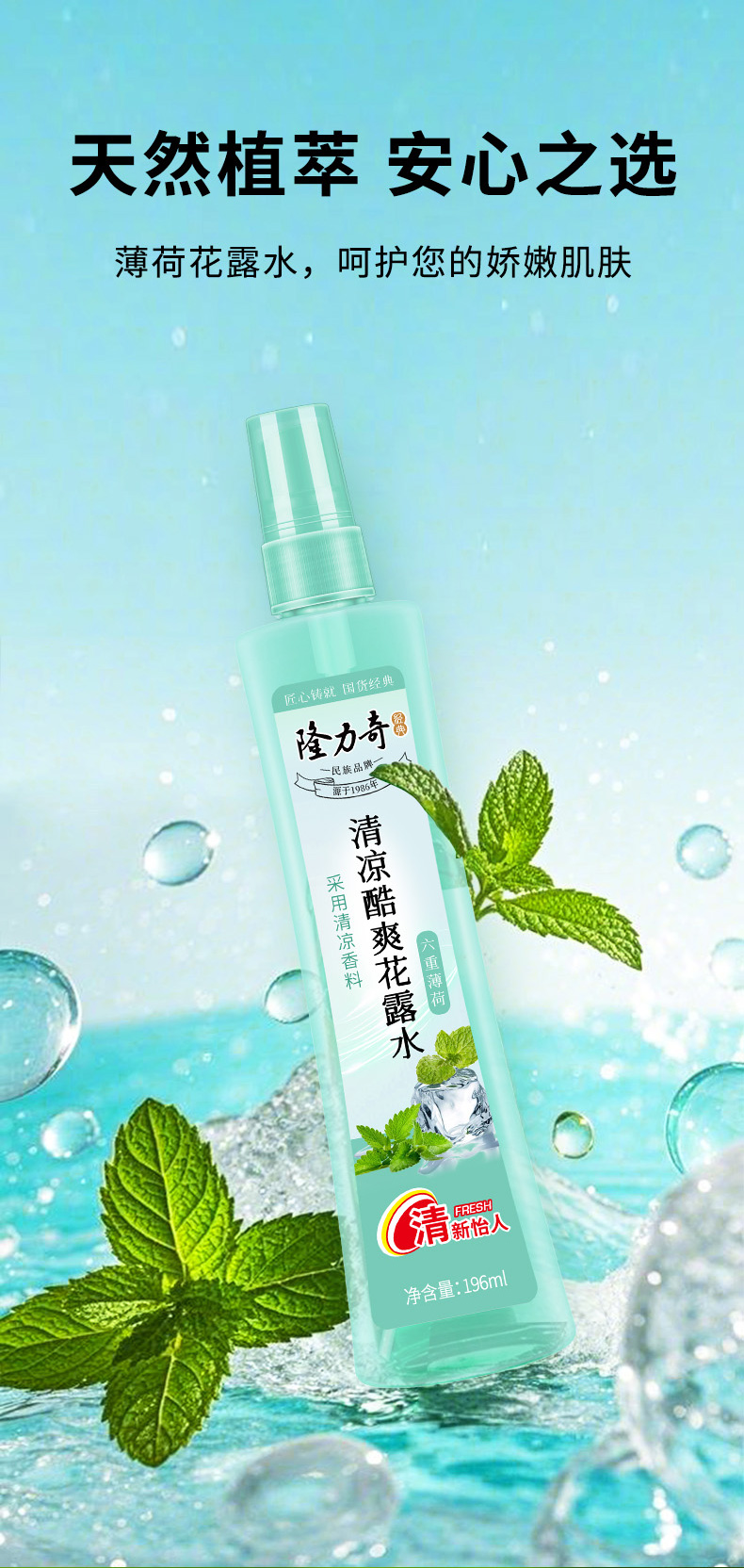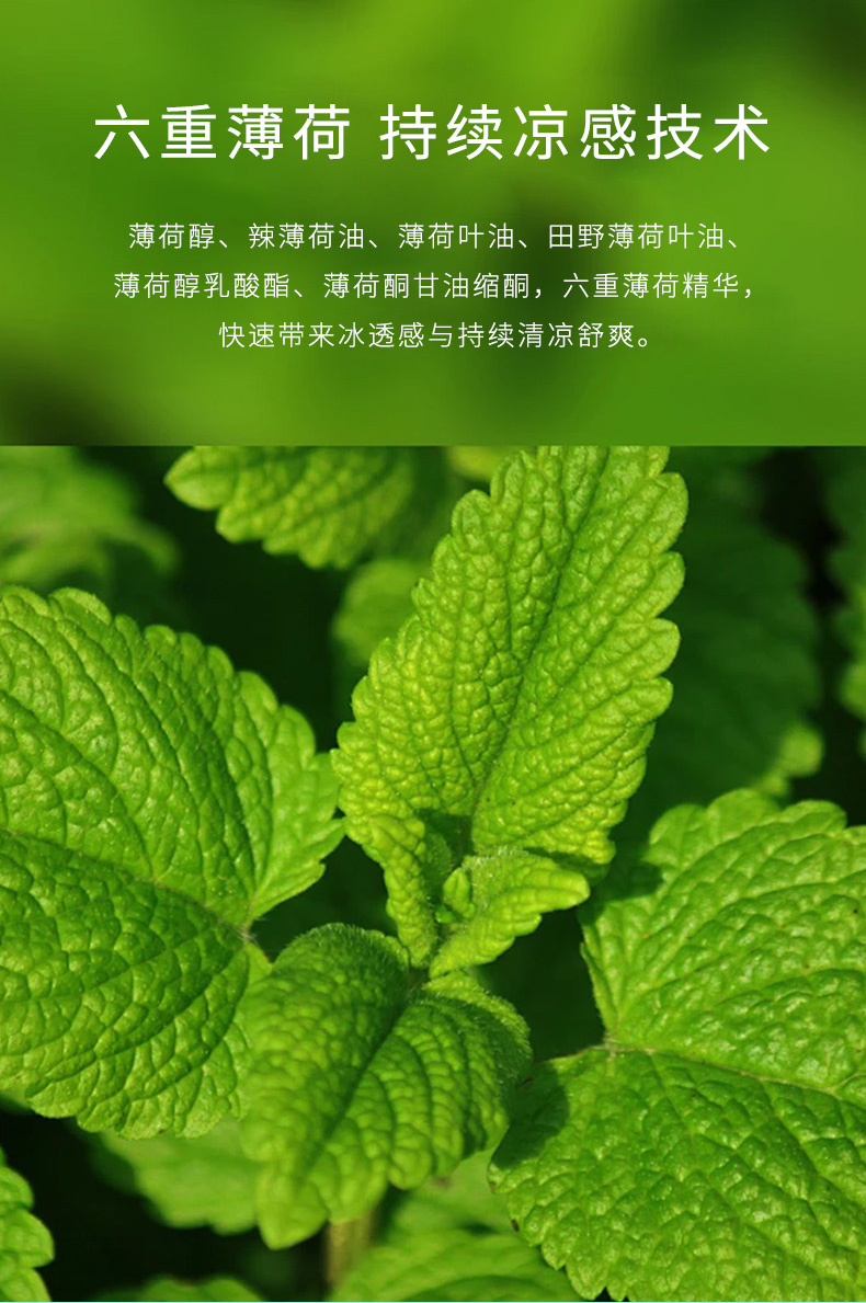 2.清凉舒爽:天然薄荷与蛇胆成分,祛痱止痒,提神醒肤;