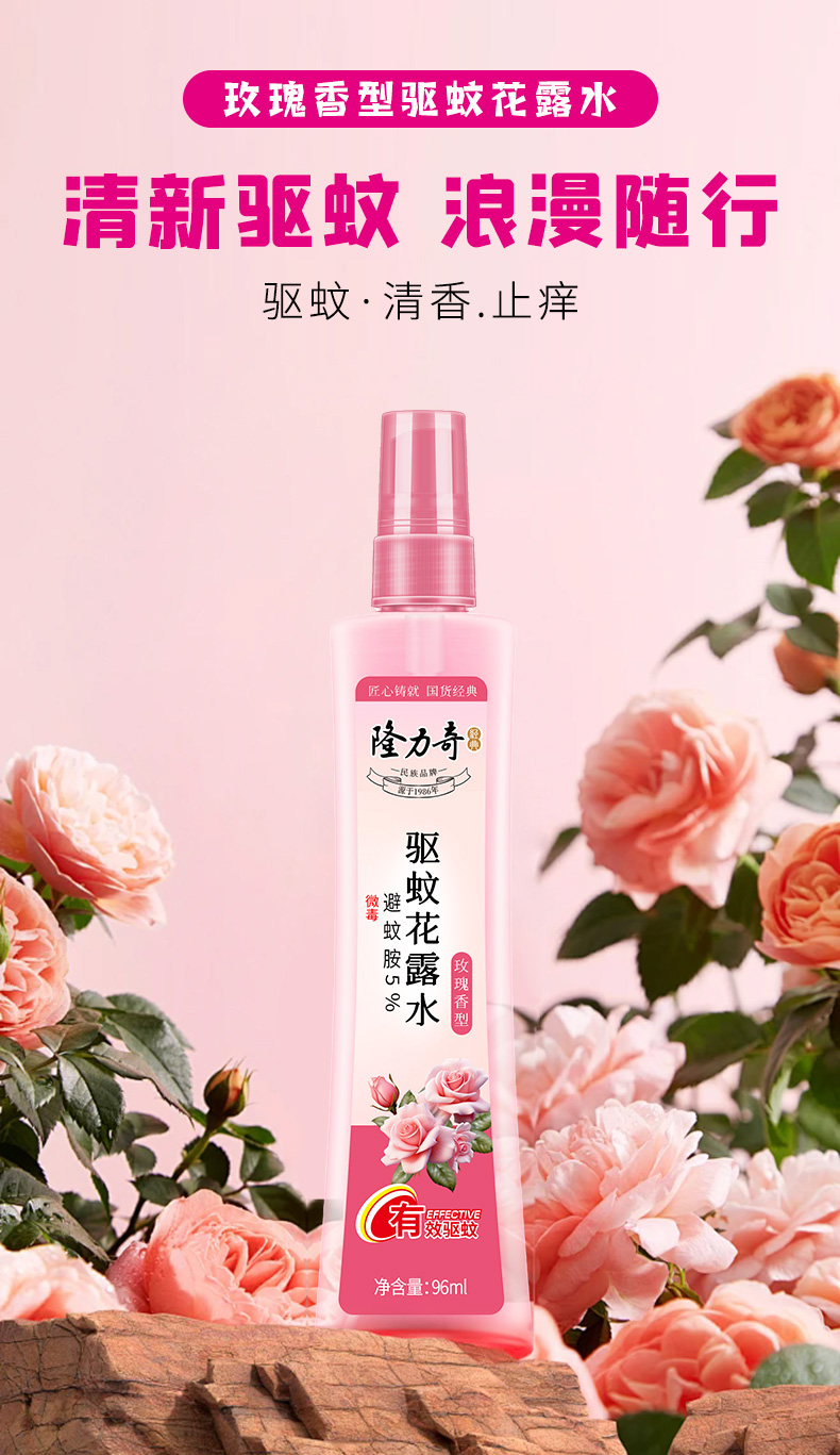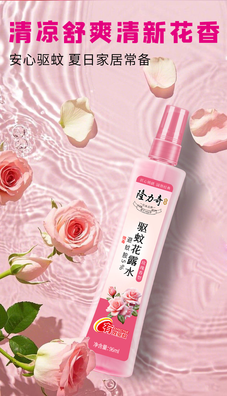 名称:隆力奇玫瑰香型驱蚊花露水96ml