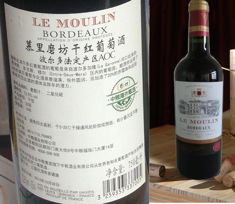 中粮法国慕里磨坊干红葡萄酒750ml*2