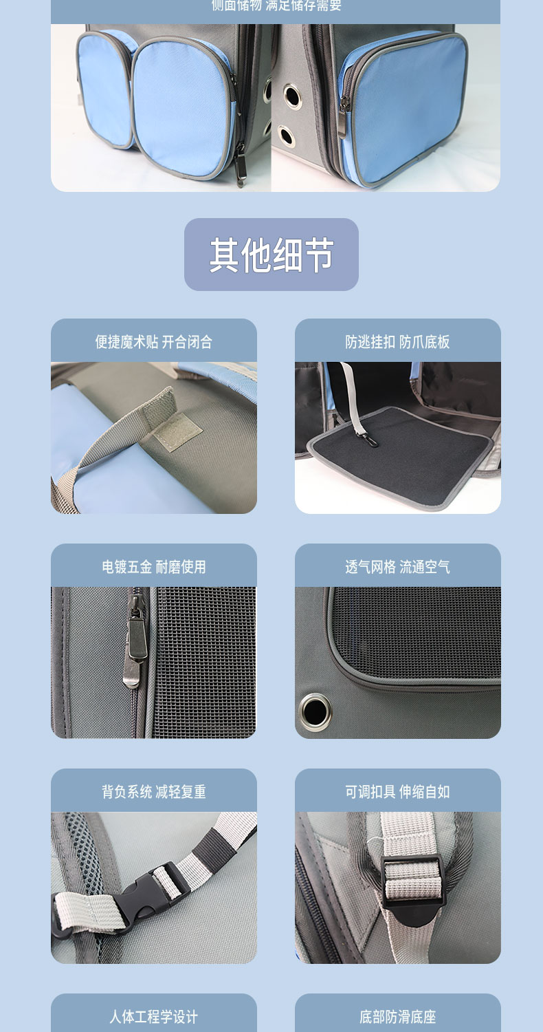 9. 侧面多规格储物袋设计,方便出行携带爱宠不同配件