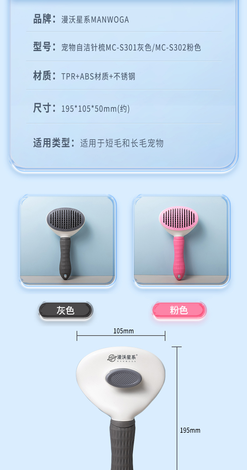 漫沃星系宠物自洁针梳MC-S301灰色/MC-S302粉色
