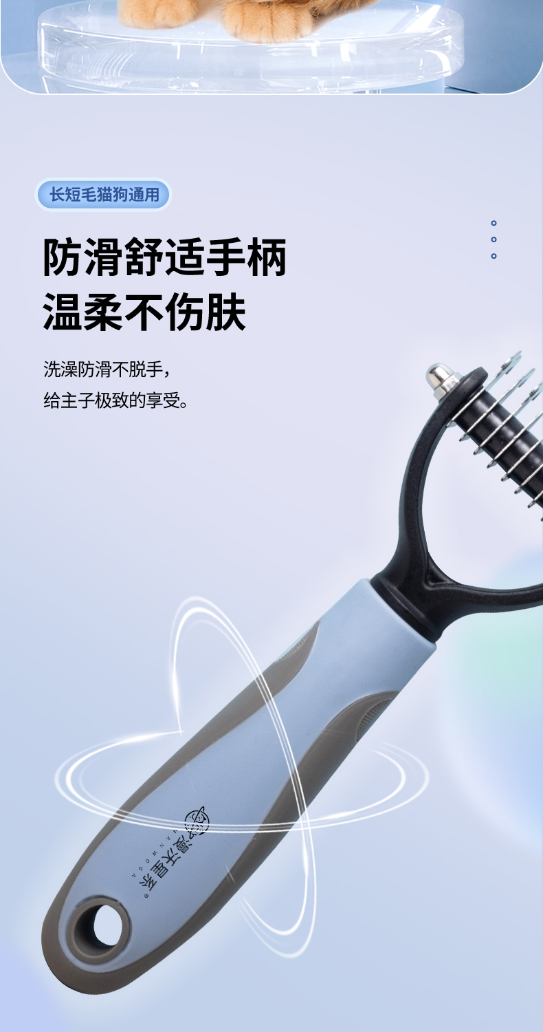 防滑舒适手柄,梳毛不伤肤,开结祛浮毛