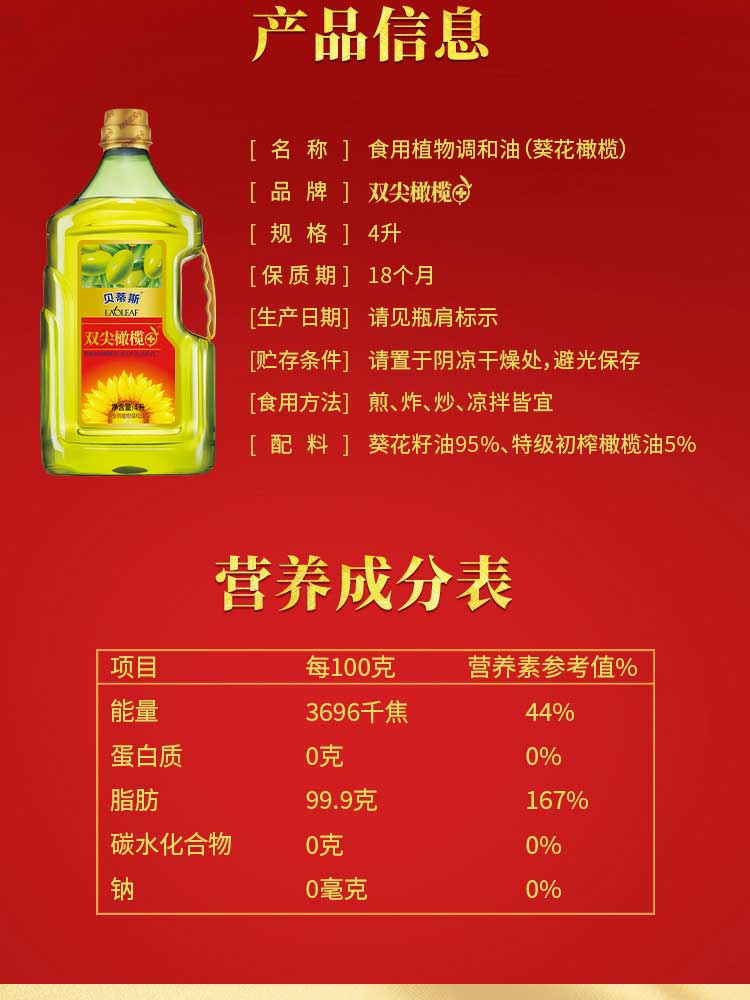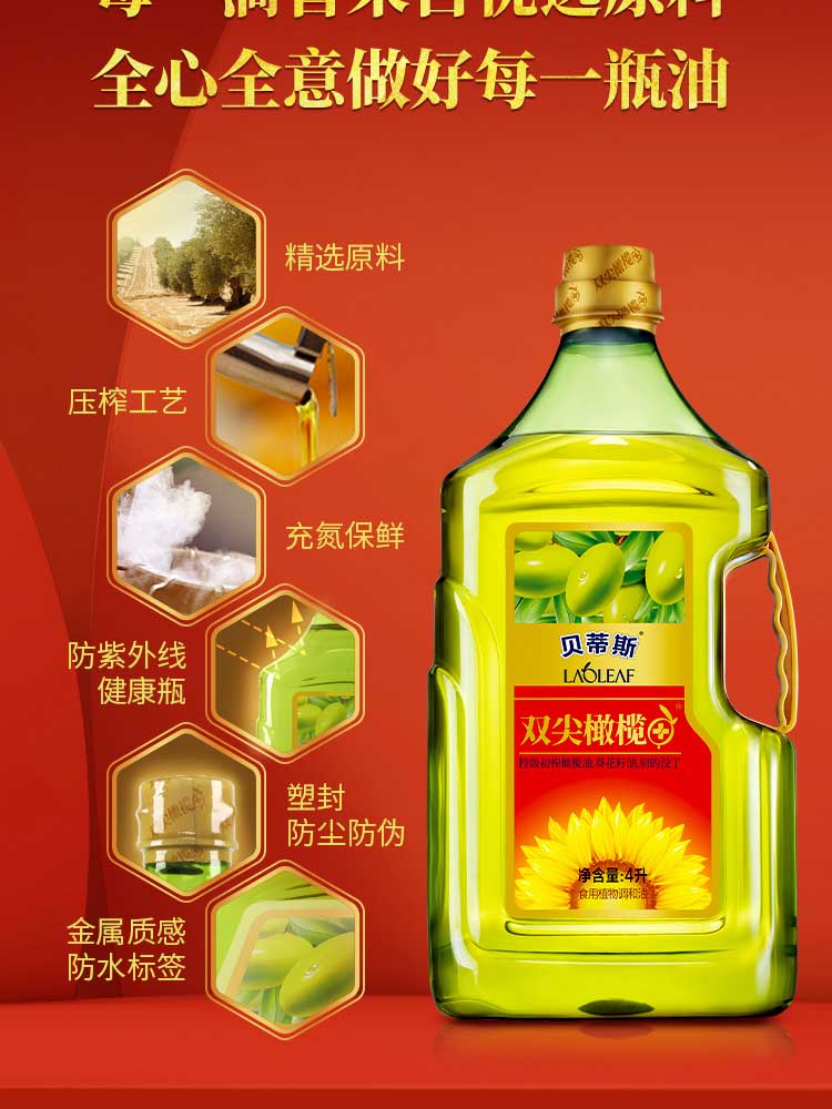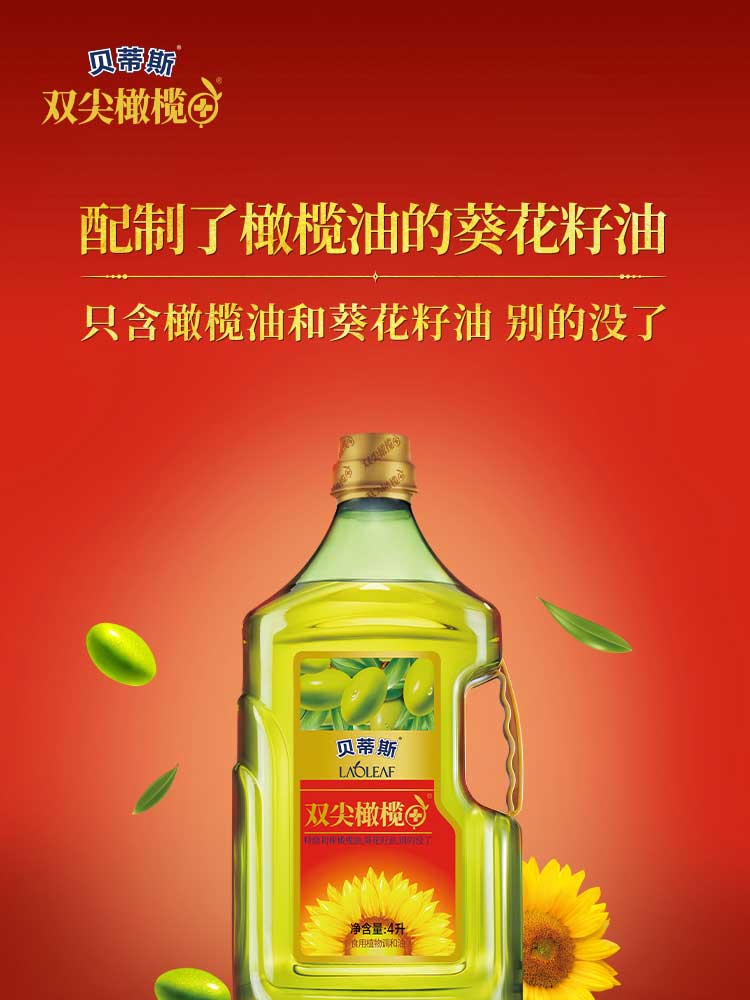 贝蒂斯食用植物调和油(葵花橄榄)4L*1瓶装