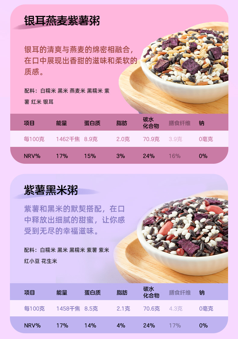 种类丰富一次备齐、相互搭配,简单易做、洗净加水放入电饭煲,一键轻松搞定