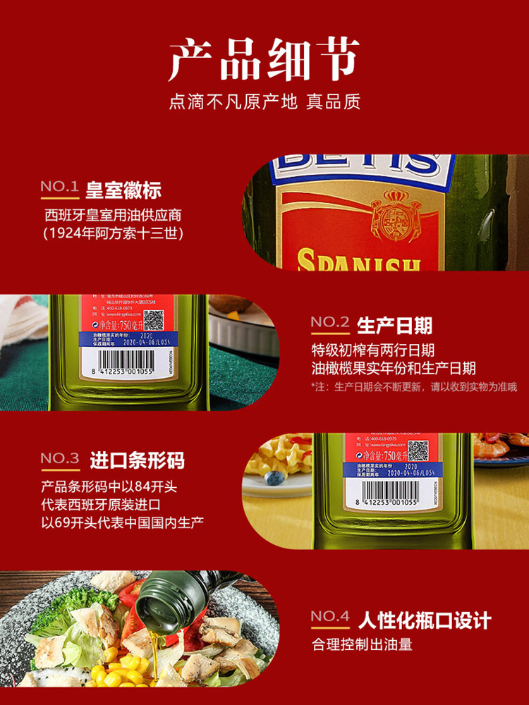 贝蒂斯特级初榨橄榄油750ML*1瓶装