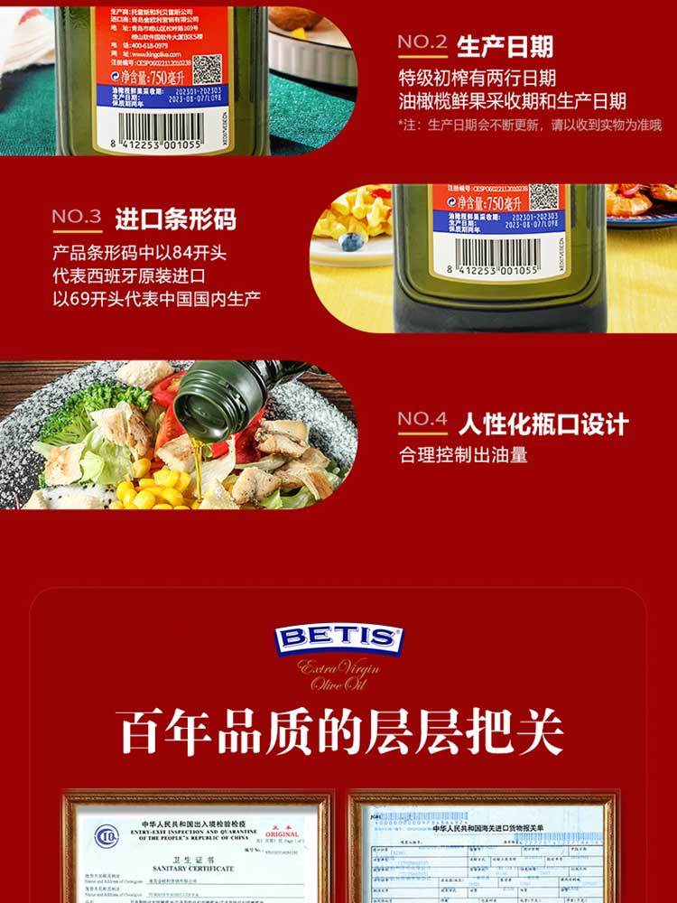 贝蒂斯特级初榨橄榄油750ML*2礼盒装