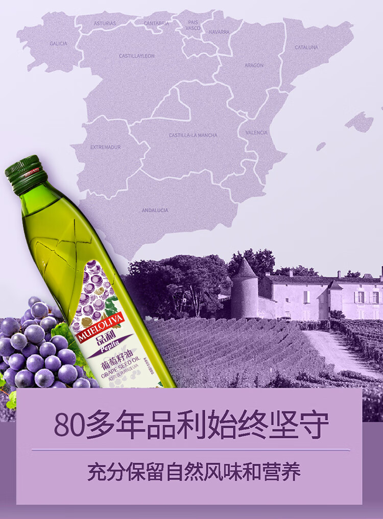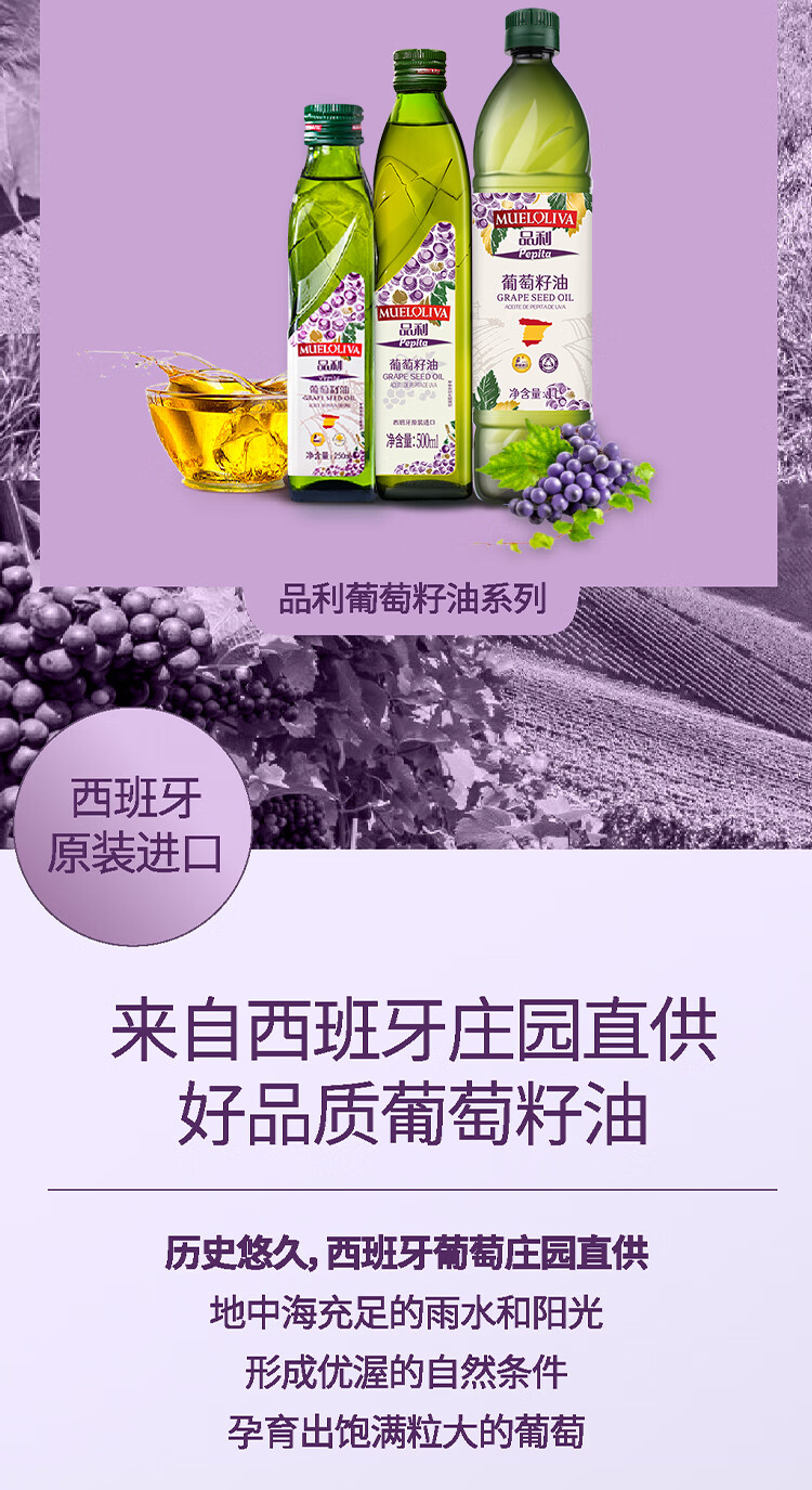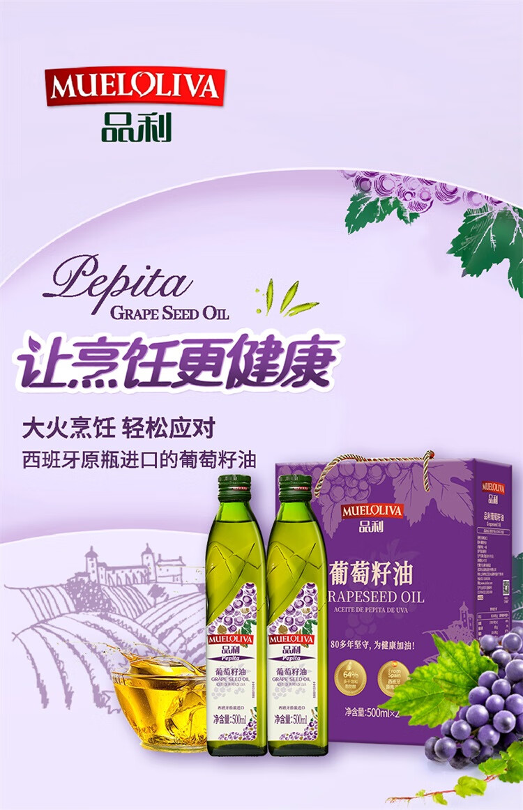 品利 西班牙原装进口葡萄籽油500ml*2礼盒装
