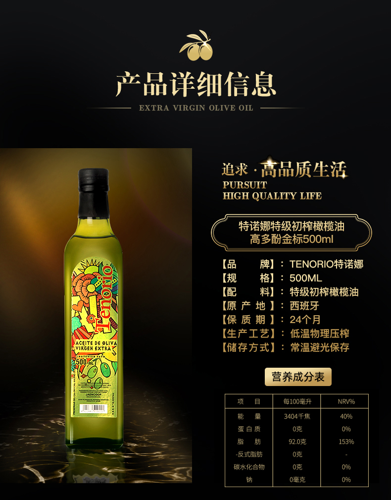 特诺娜特级初榨橄榄油500ML(金标)*2