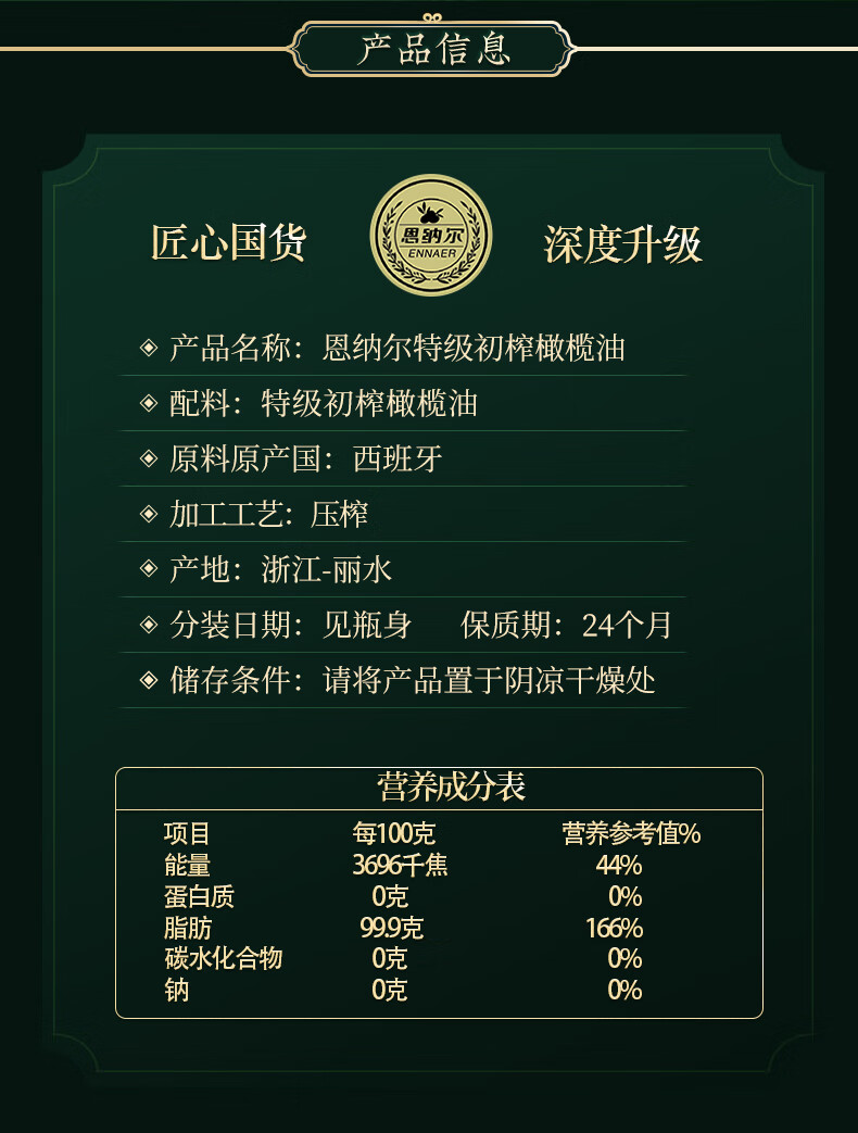 恩纳尔特级初榨橄榄油500ml*2