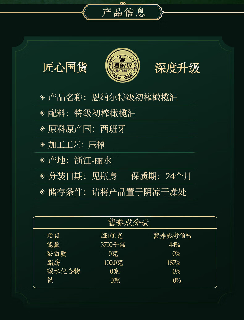 恩纳尔特级初榨橄榄油750ml*2