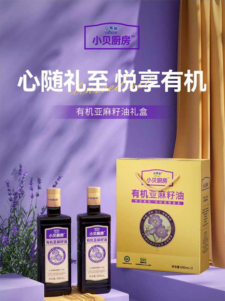 贝蒂斯小贝厨房有机亚麻籽油500ml*2礼盒装