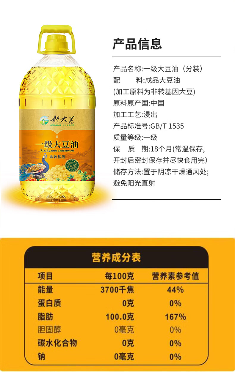 新大荒印象非转基因一级大豆油5L
