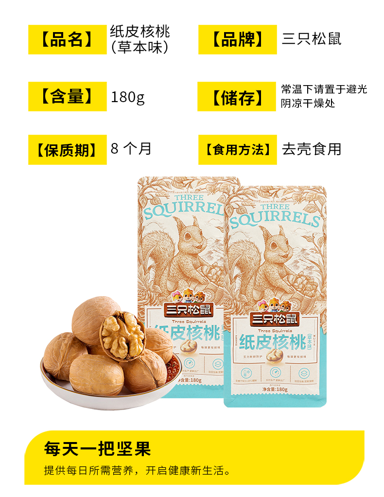 三只松鼠草本味纸皮核桃180g