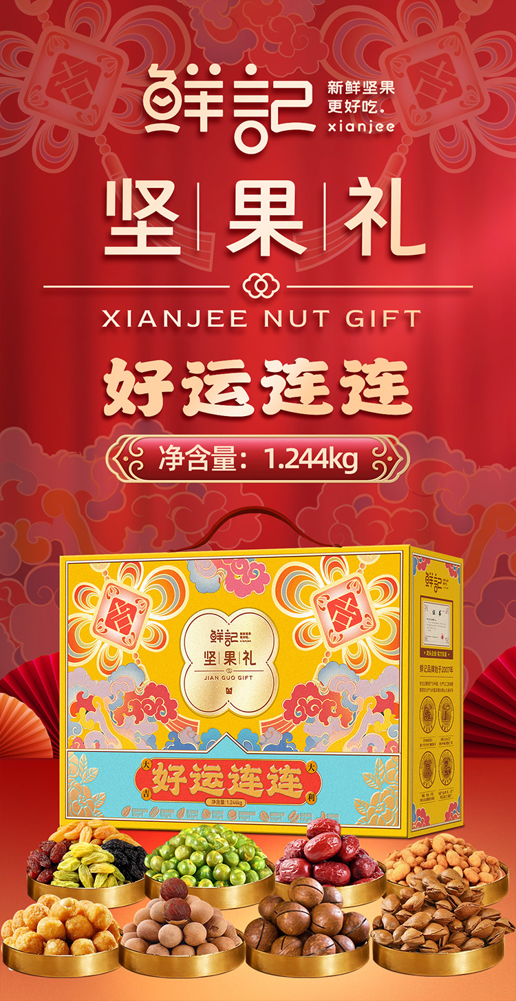 鲜记 坚果礼好运连连1.244kg