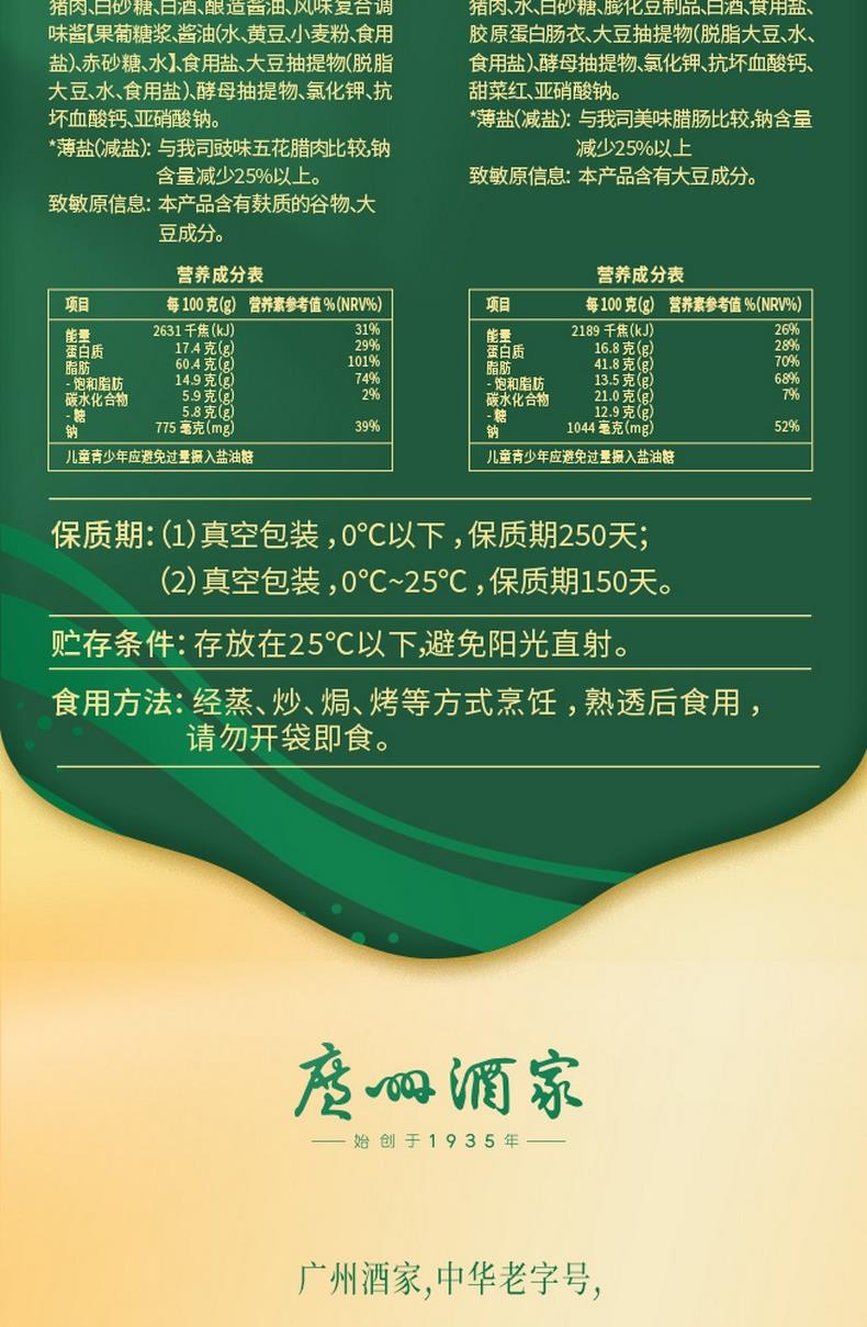 【广州酒家】 薄盐双珍 腊肠礼盒400g