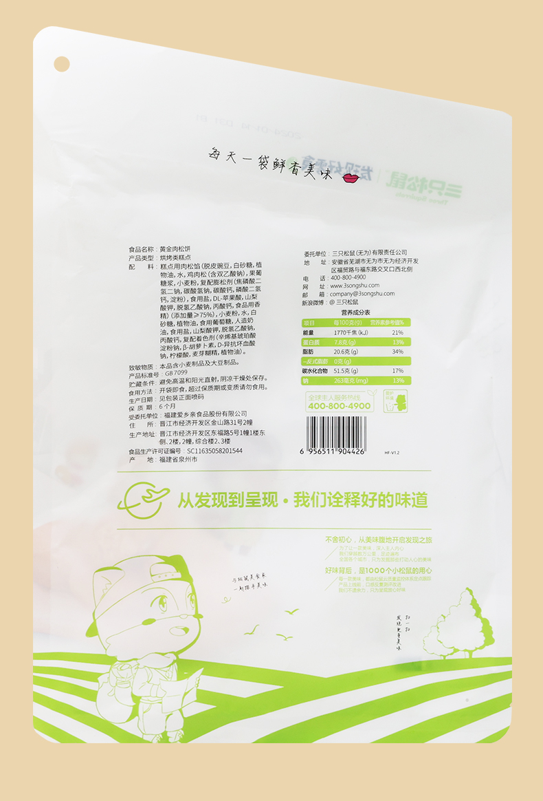 三只松鼠原味肉松饼456g