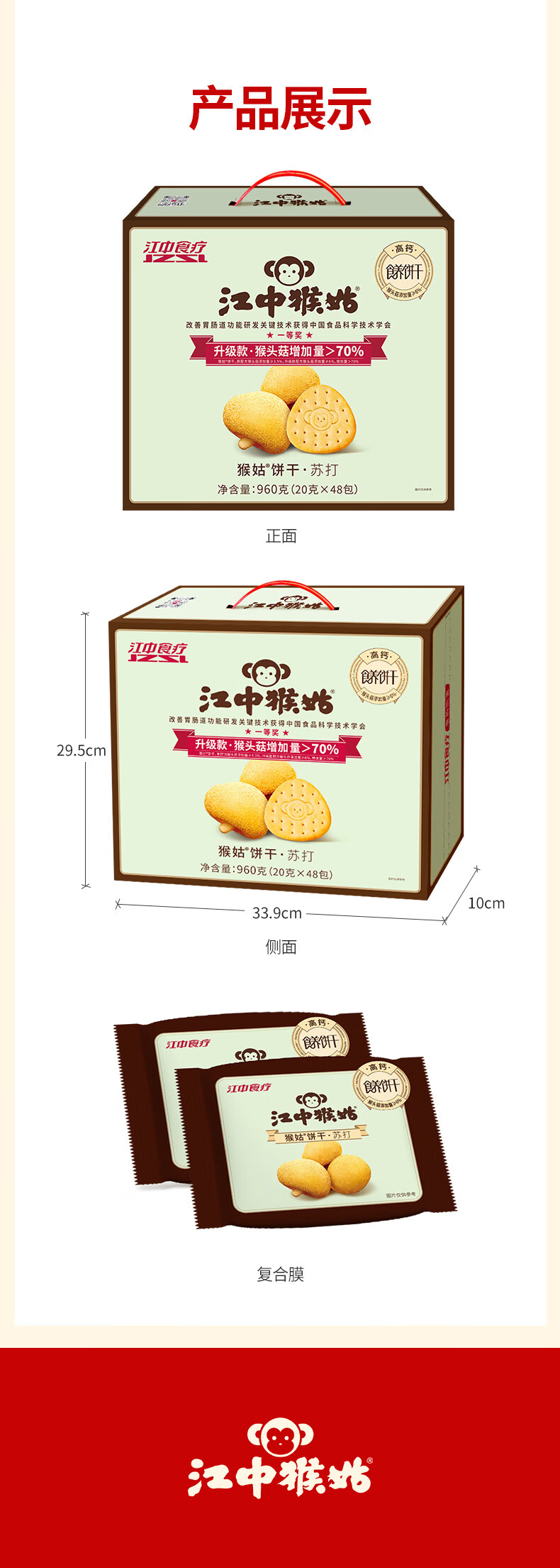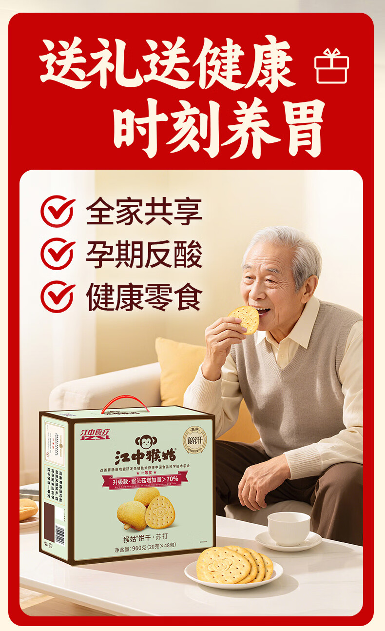 江中猴姑苏打饼干20天(礼盒款) -(三角形、猴头菇6%)原味苏打960g-礼盒款