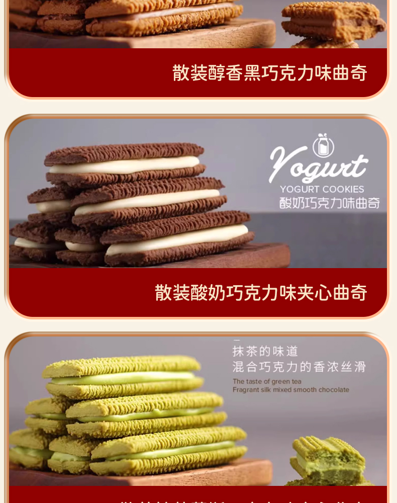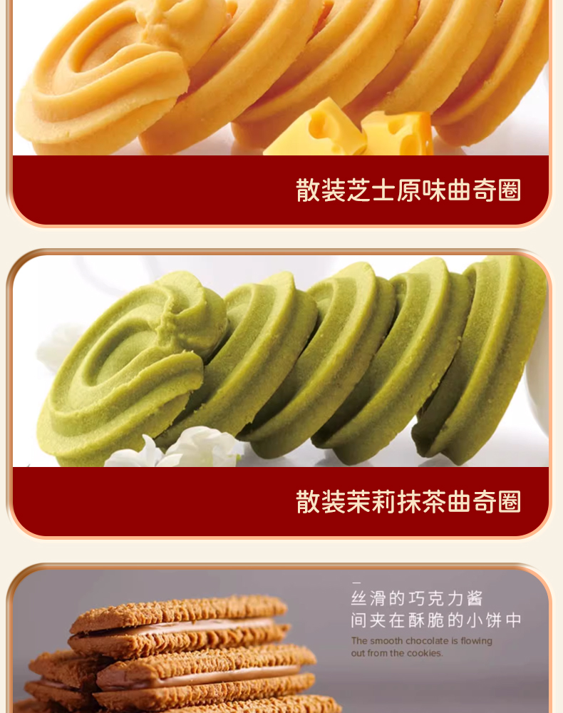 【法丽兹】散装抹茶慕斯巧克力味夹心曲奇
