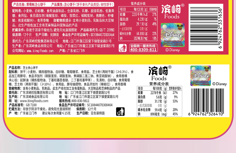 【迪士尼】草莓酸奶味夹心饼干 150g*1