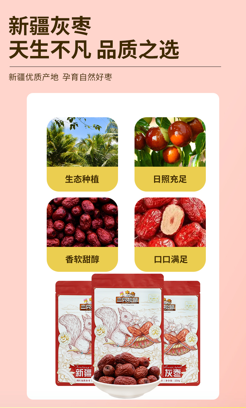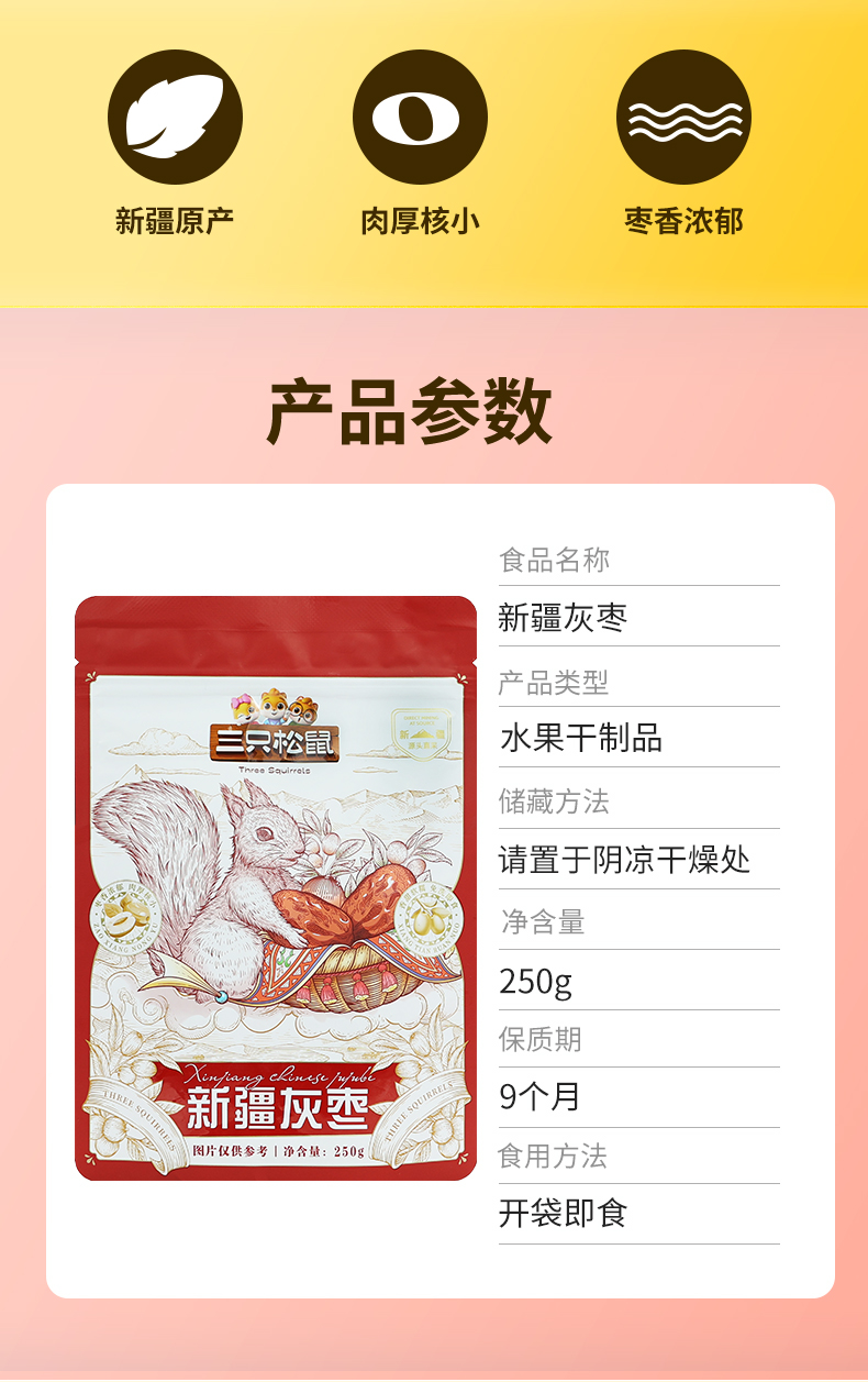 • 三只松鼠新疆灰枣250g