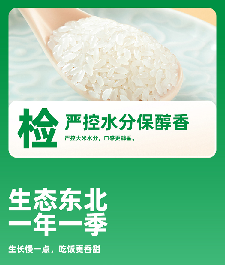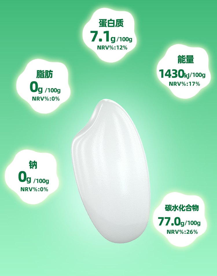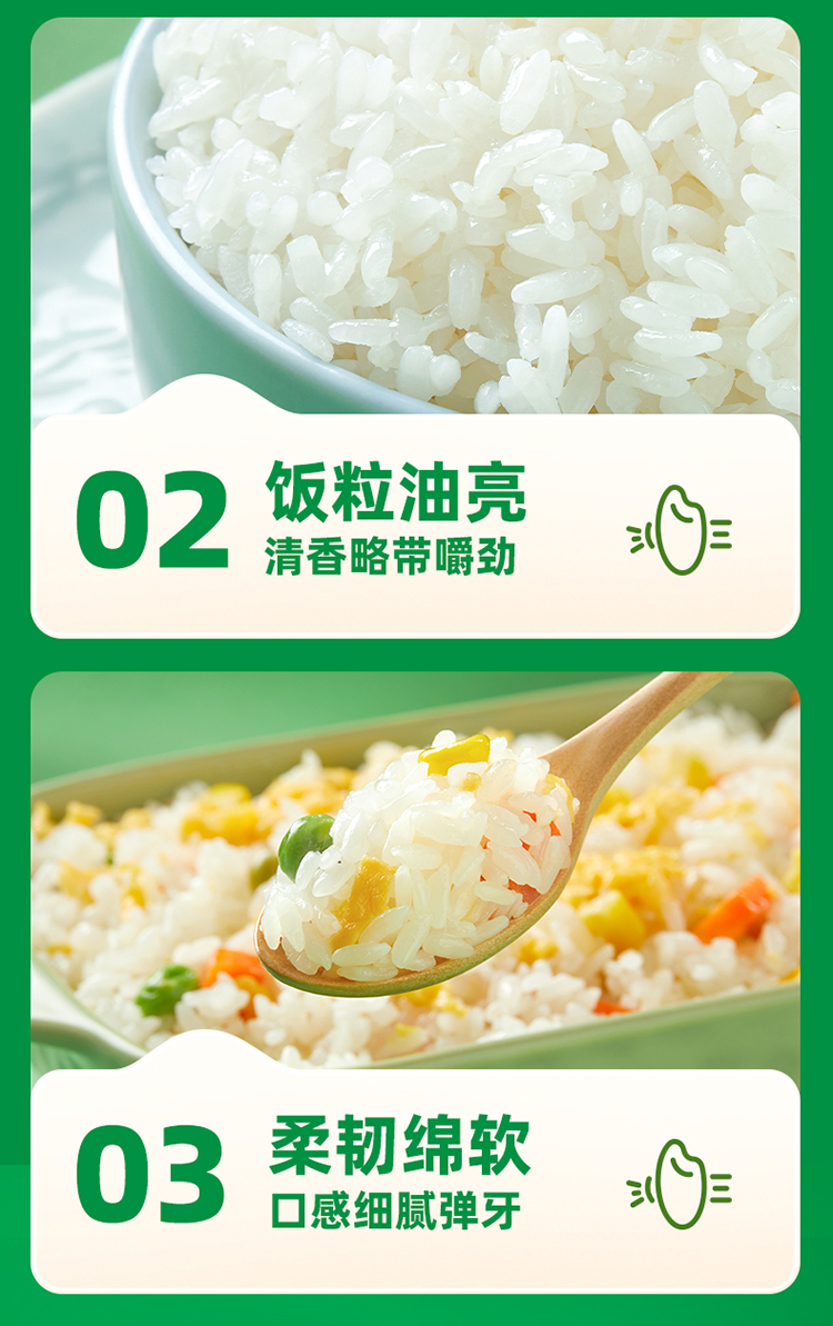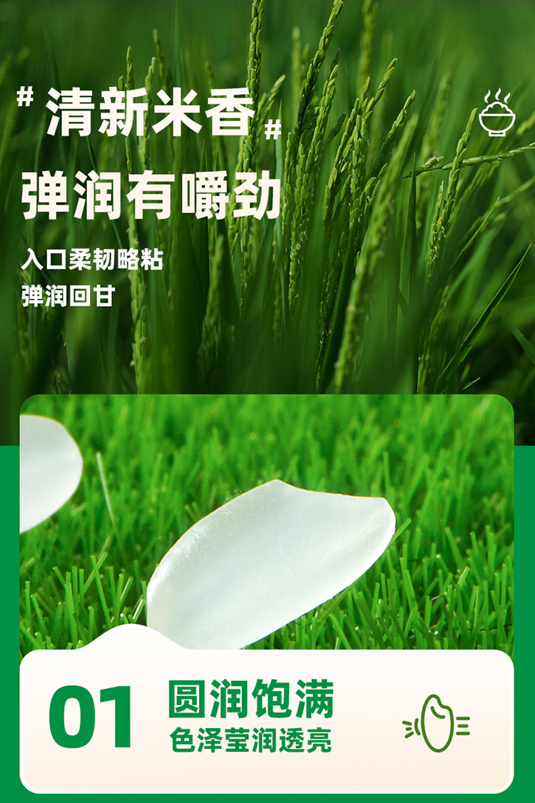 米粒圆润饱满,色泽油润透亮,饭粒清香有嚼劲,细腻弹牙