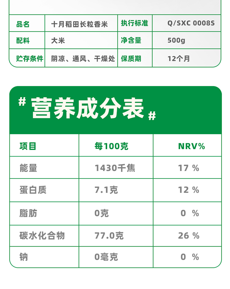 十月稻田长粒香米500g
