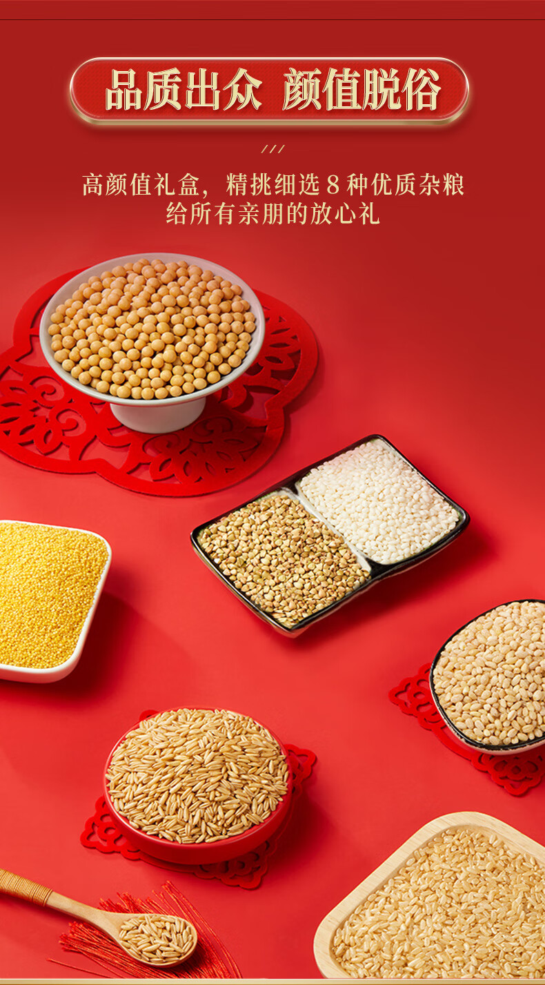 产品组合:小麦仁、糯米、黄豆、荞麦米、血糯米、糙米、燕麦米、黄小米、(各400g)