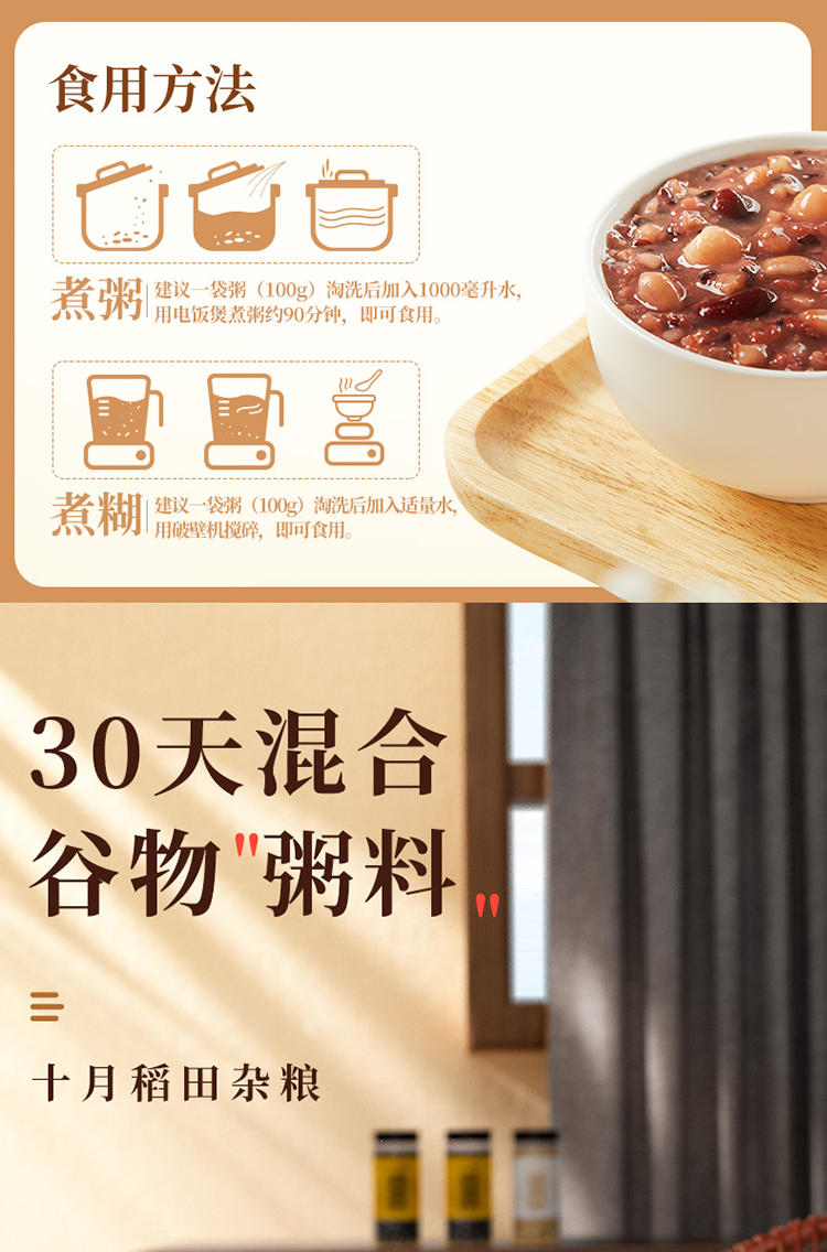 30天混合谷物“粥料”,聚合21种谷物,科学搭配,每餐至少4种食材,营养师推荐。