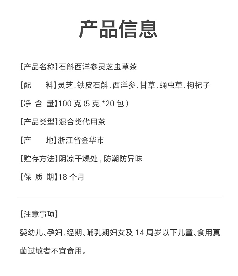 张太和 石斛西洋参灵芝虫草茶 100g(5g*20包)