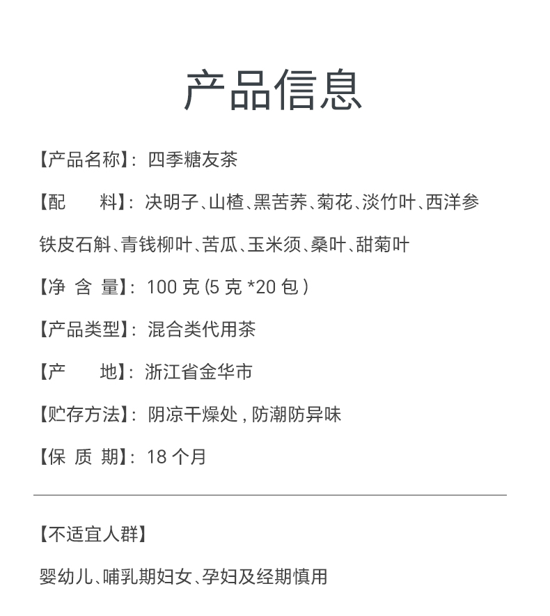 张太和 四季糖友茶 100g(5g*20)/袋*2袋
