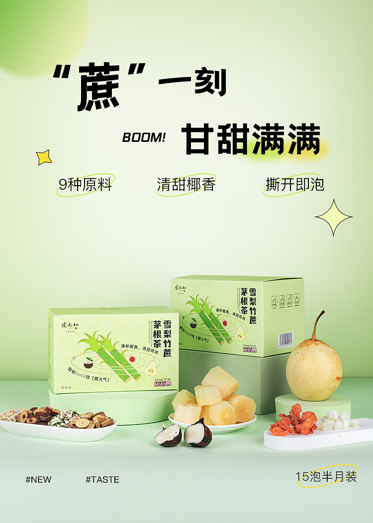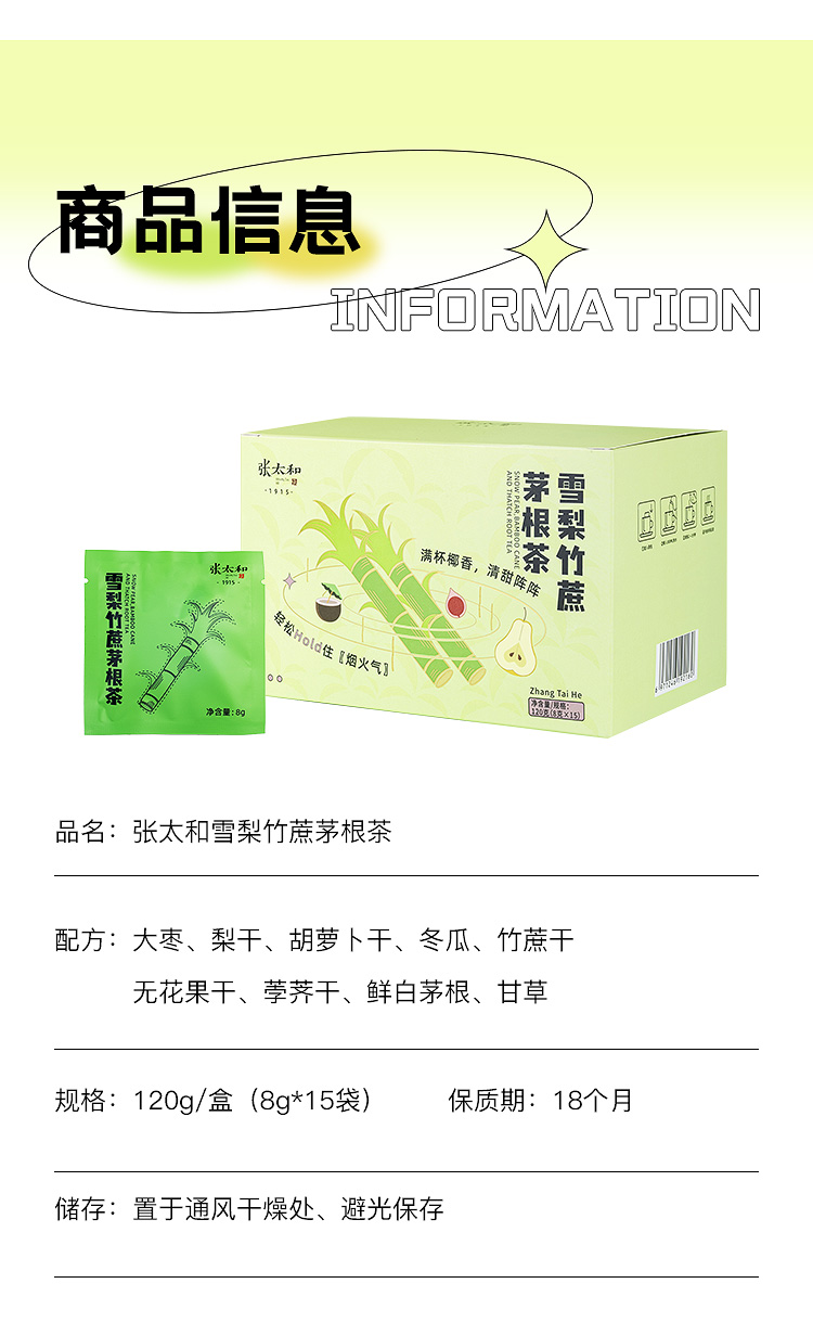 张太和 雪梨竹蔗茅根茶 120g(8g*15包) 三盒