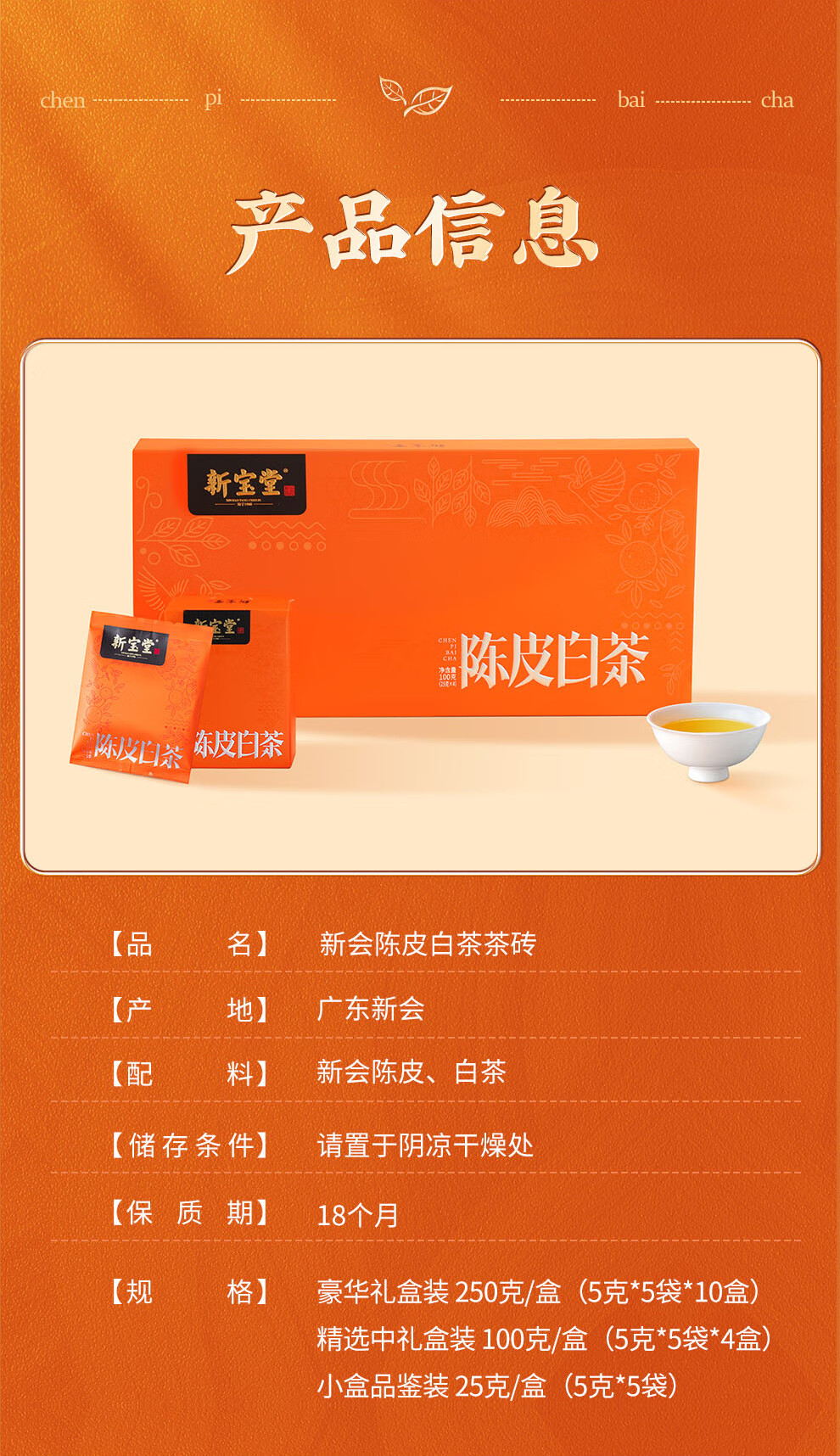 【新宝堂】陈皮白茶大礼盒25克*10盒