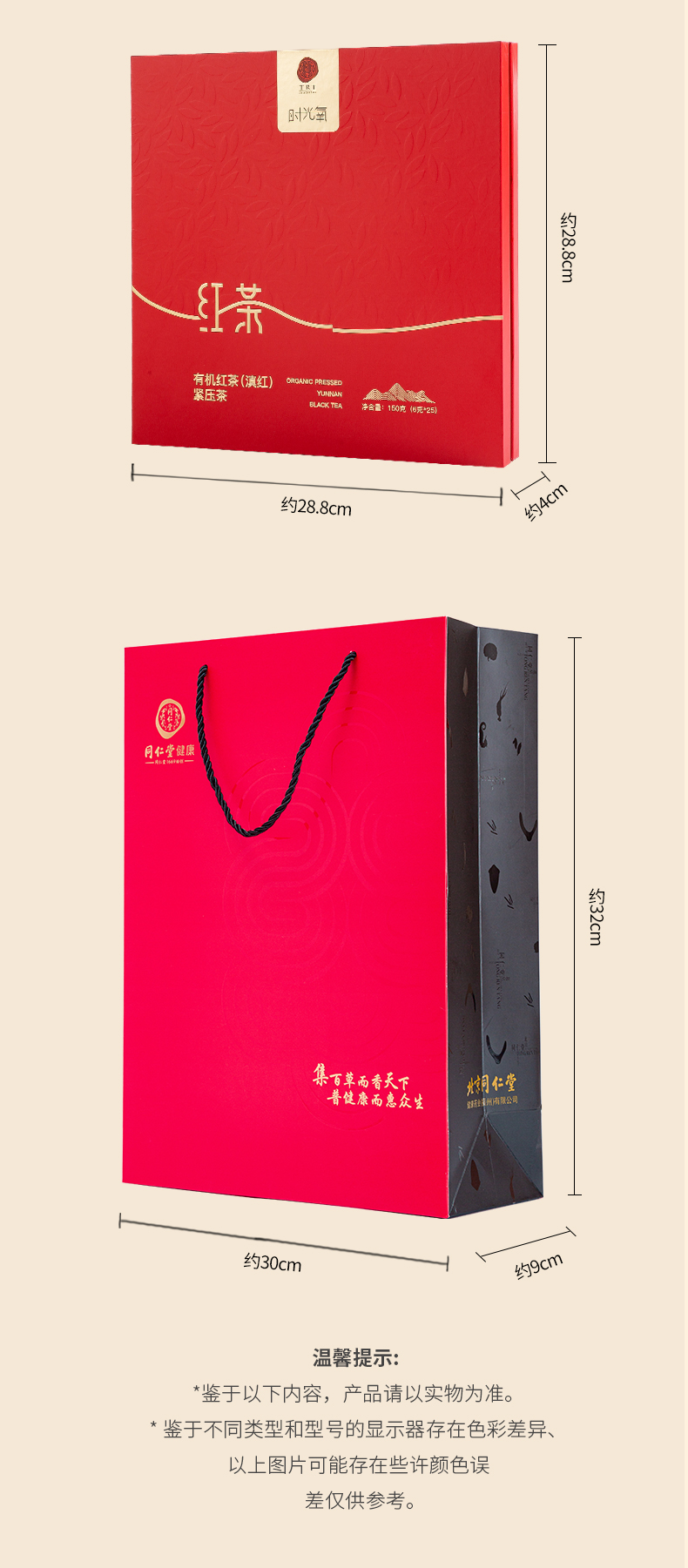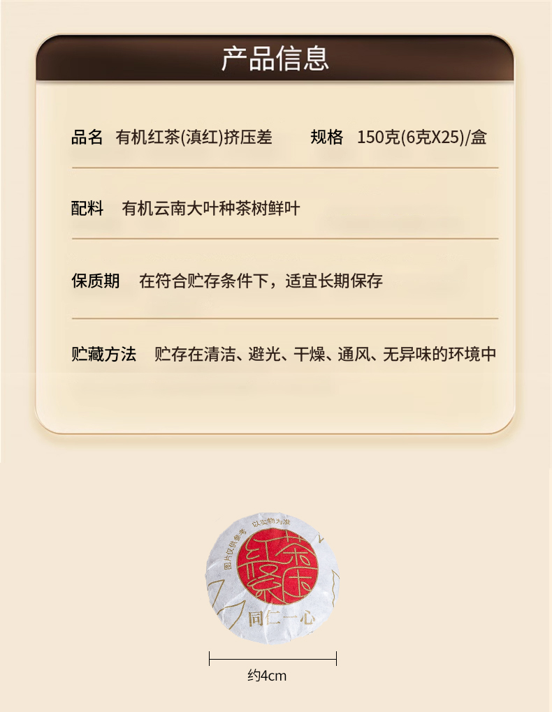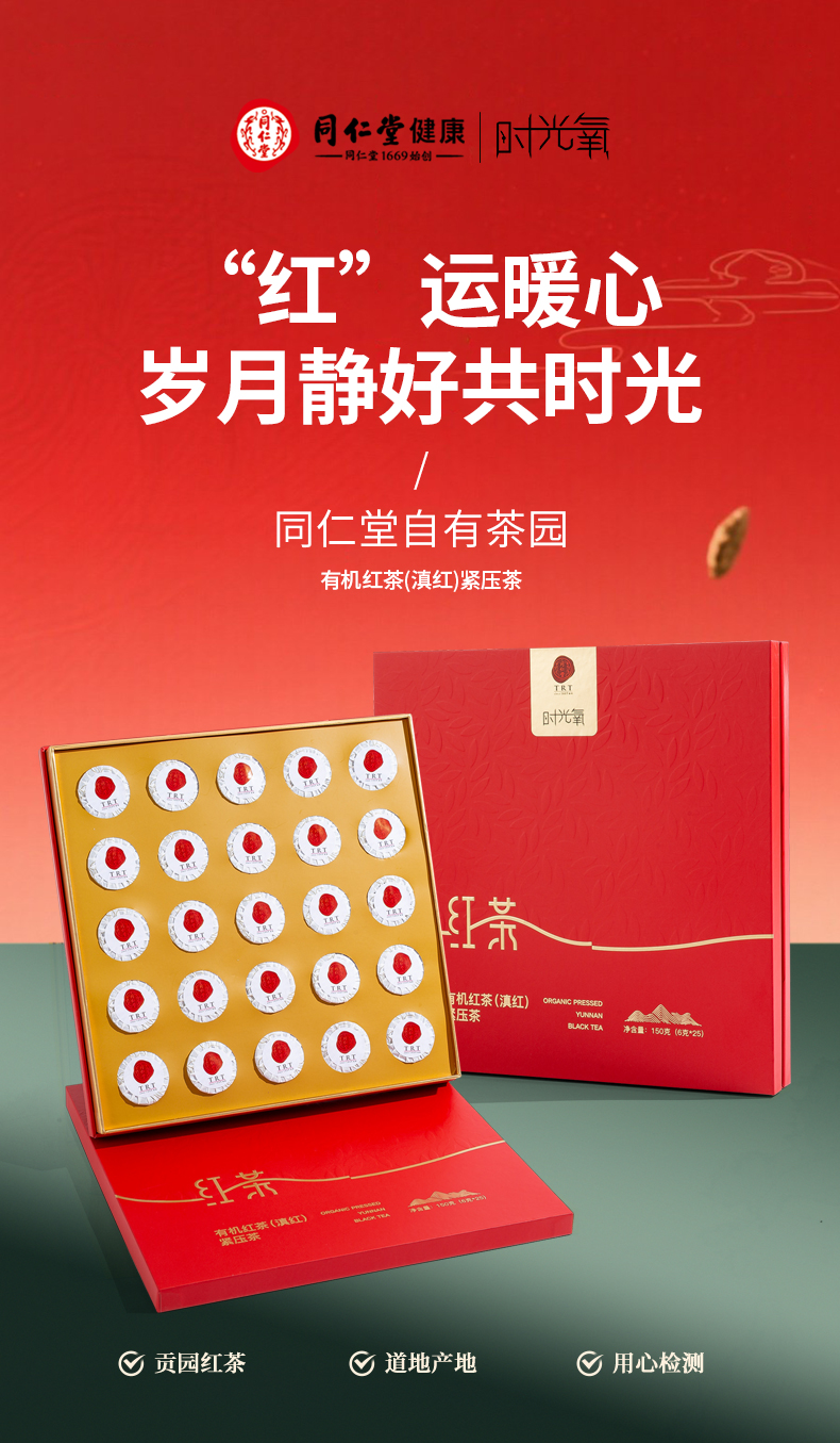 北京同仁堂时光氧有机红茶(滇红)紧压茶150克 (6克*25)