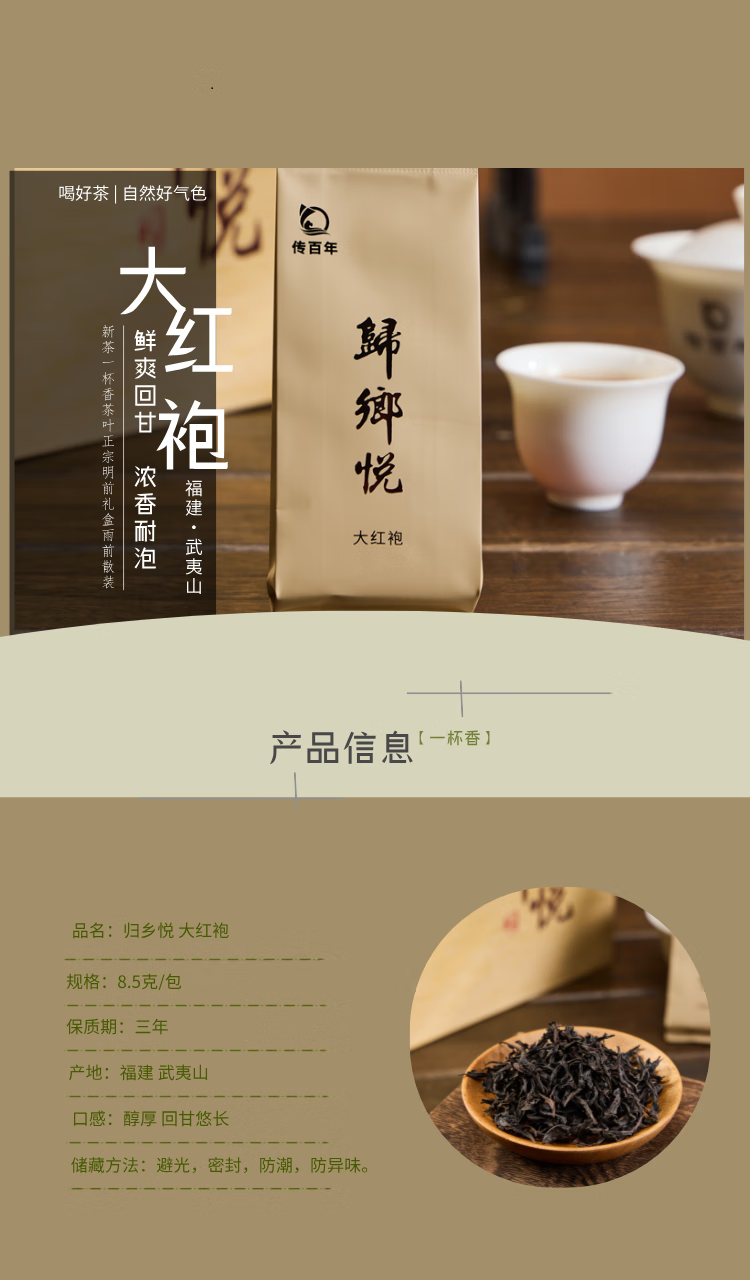 传百年 归乡悦(武夷大红袍)255克/盒(8.5克*30泡)