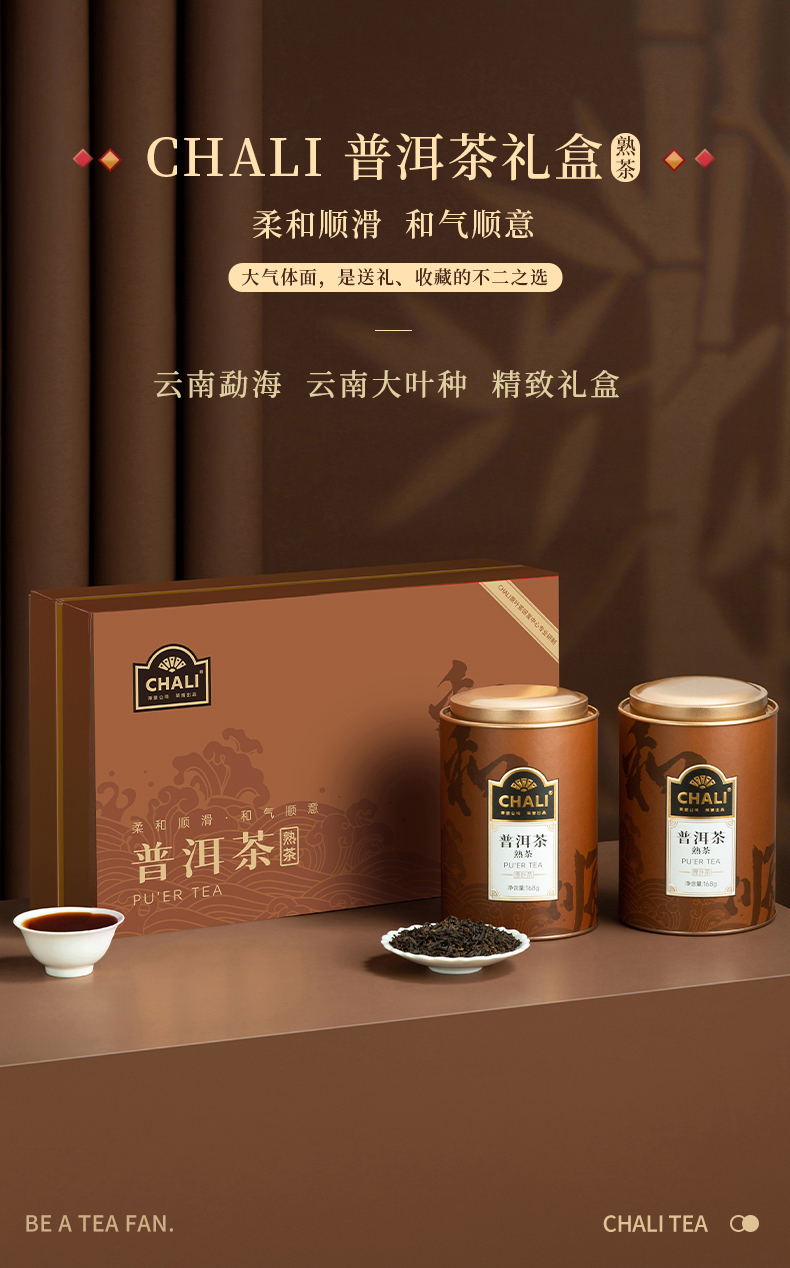 CHALI普洱茶(熟茶)罐装散茶礼盒336g